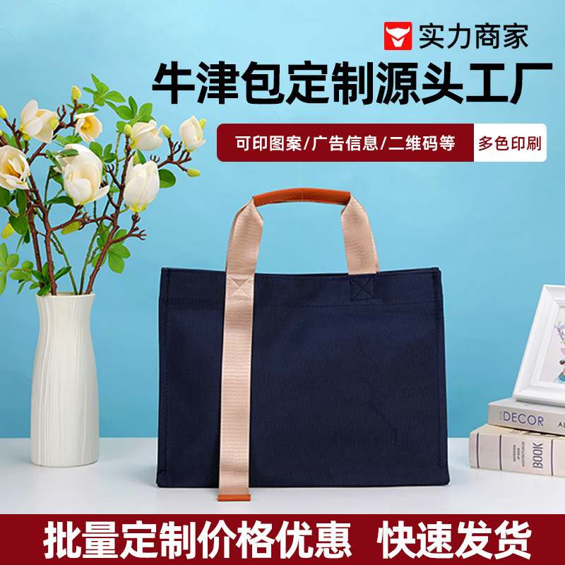 商务风防水双层牛津袋手提大容量托特包通勤便携公司可印图案logo