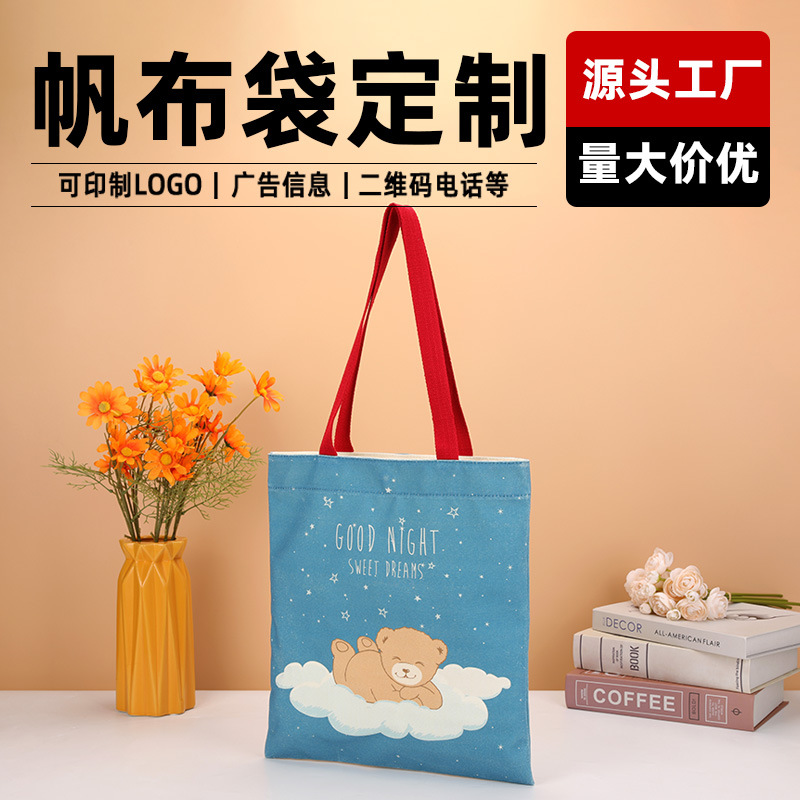 厂家销售休闲帆布包大容量手提袋便携礼品公司学校可加印logo图案