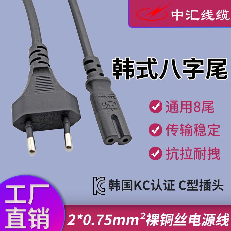 韩式8字尾电源线两芯韩国插头线KC认证纯铜韩国两圆插头线电源线