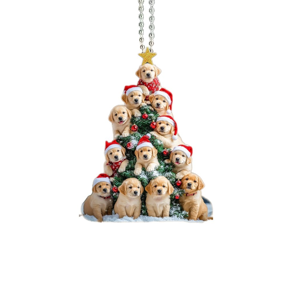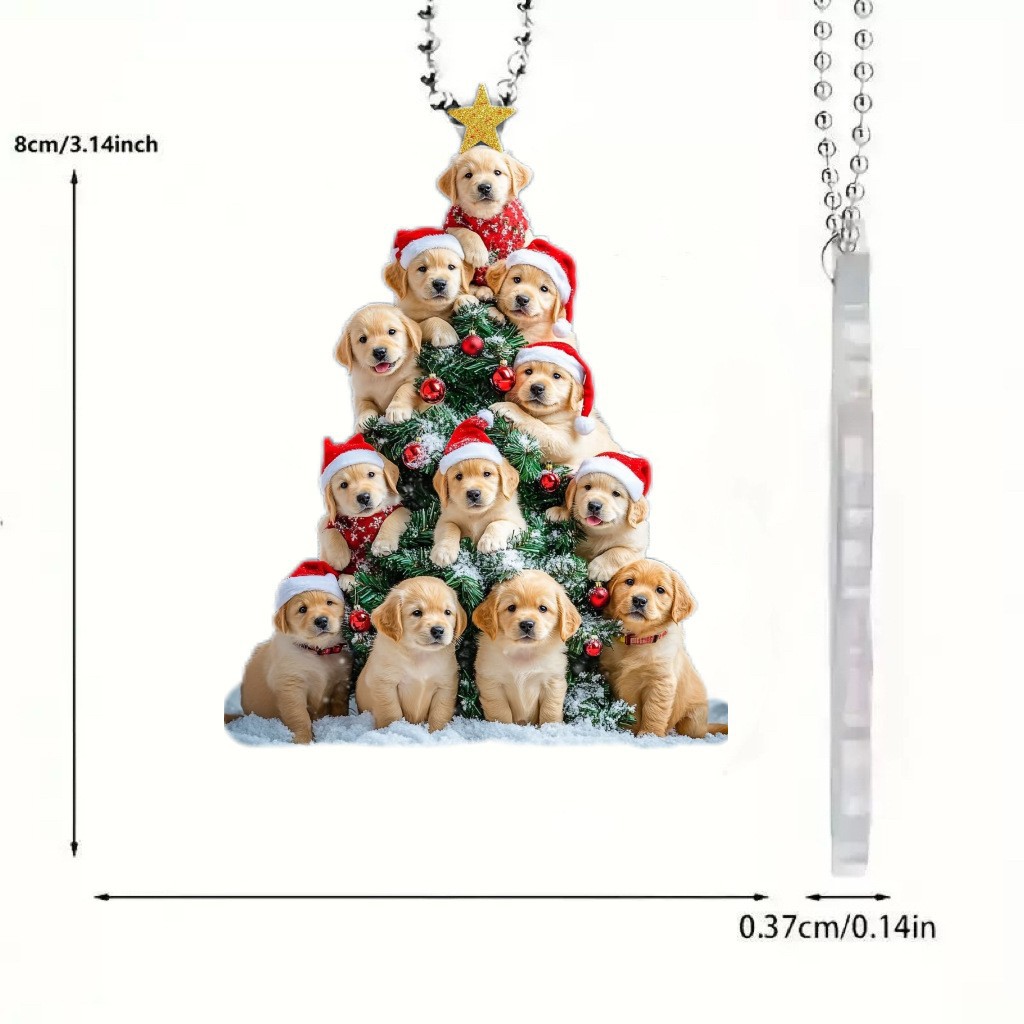 亚克力圣诞小狗挂件透亮精巧红帽雪纹超应景挂哪儿都添份萌萌圣诞