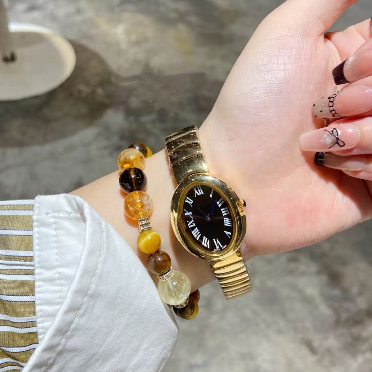 跨境外贸卡家新款石英女士手表小金手镯浴缸椭圆镶钻罗马典雅批发