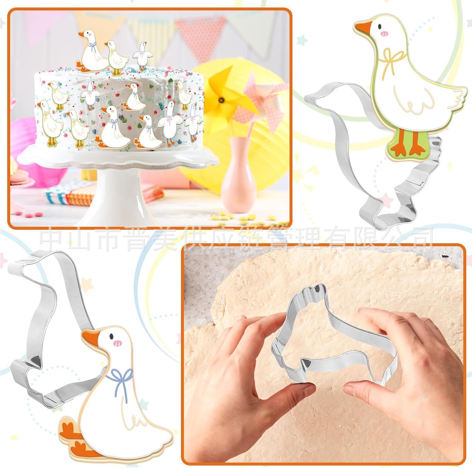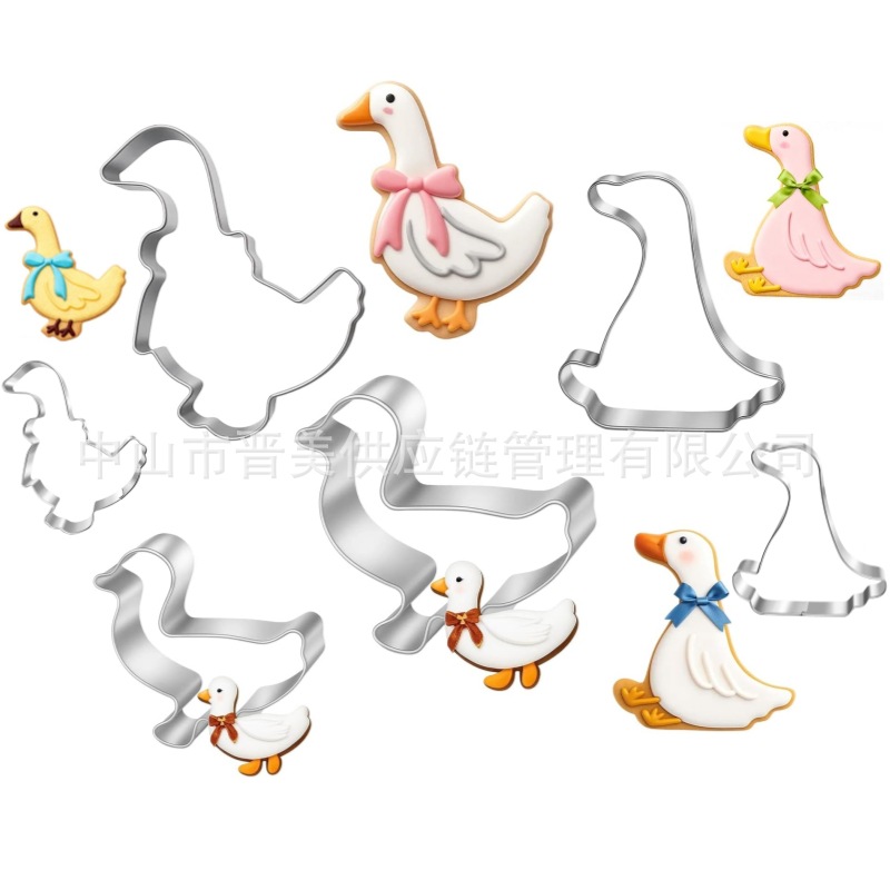 2件套大白鹅饼干模具动物天鹅傻鹅翻糖切模不锈钢烘焙工具diy跨境