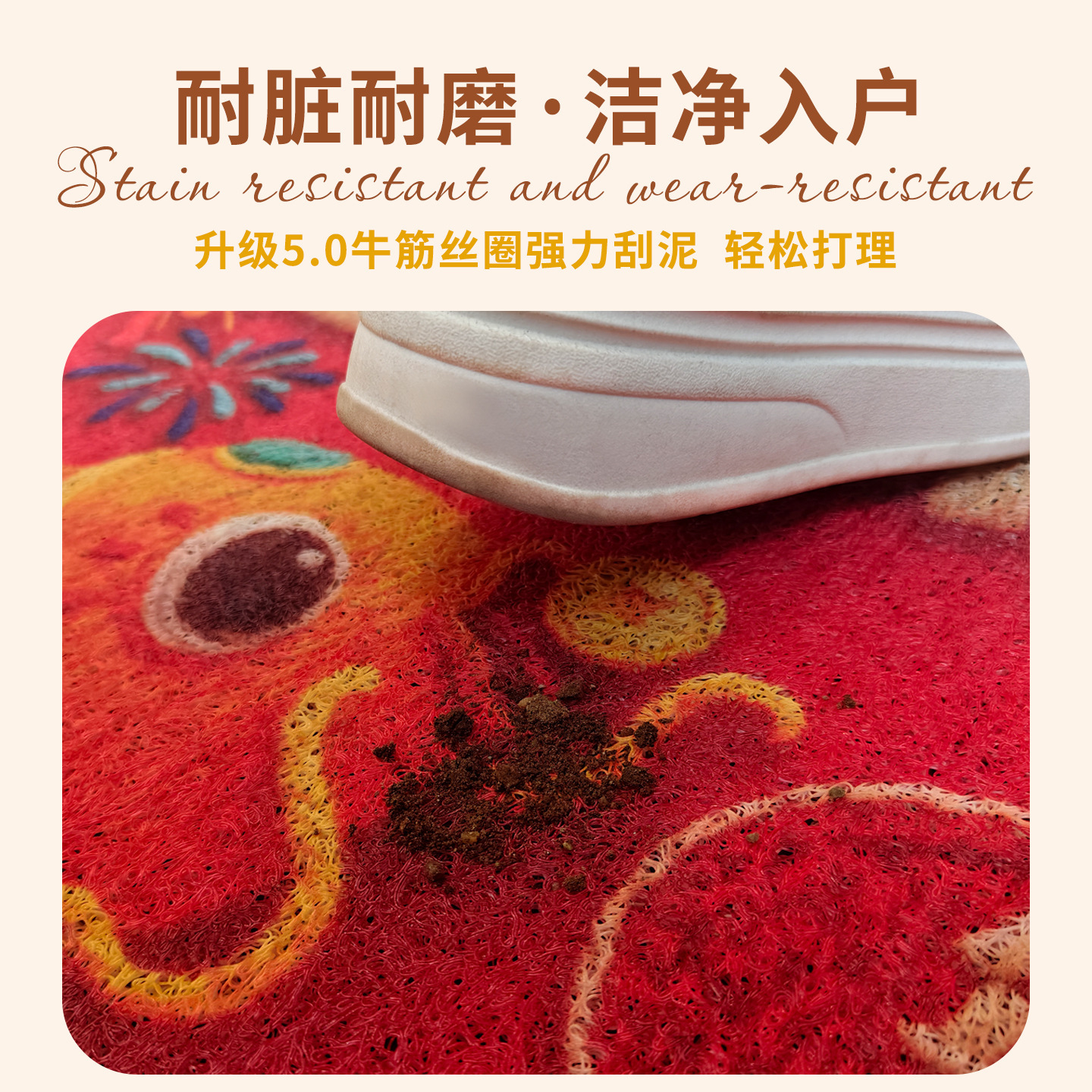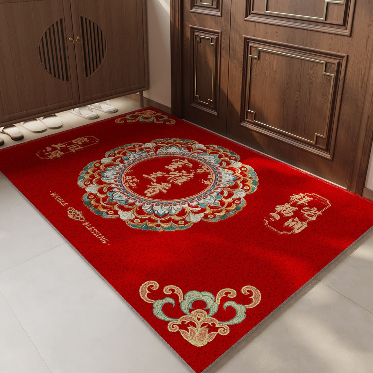 新年红色喜庆入户地垫中式家用进门脚垫耐脏蹭土玄关垫子可裁剪