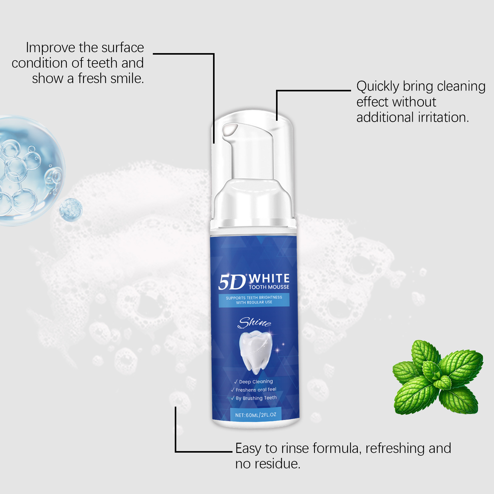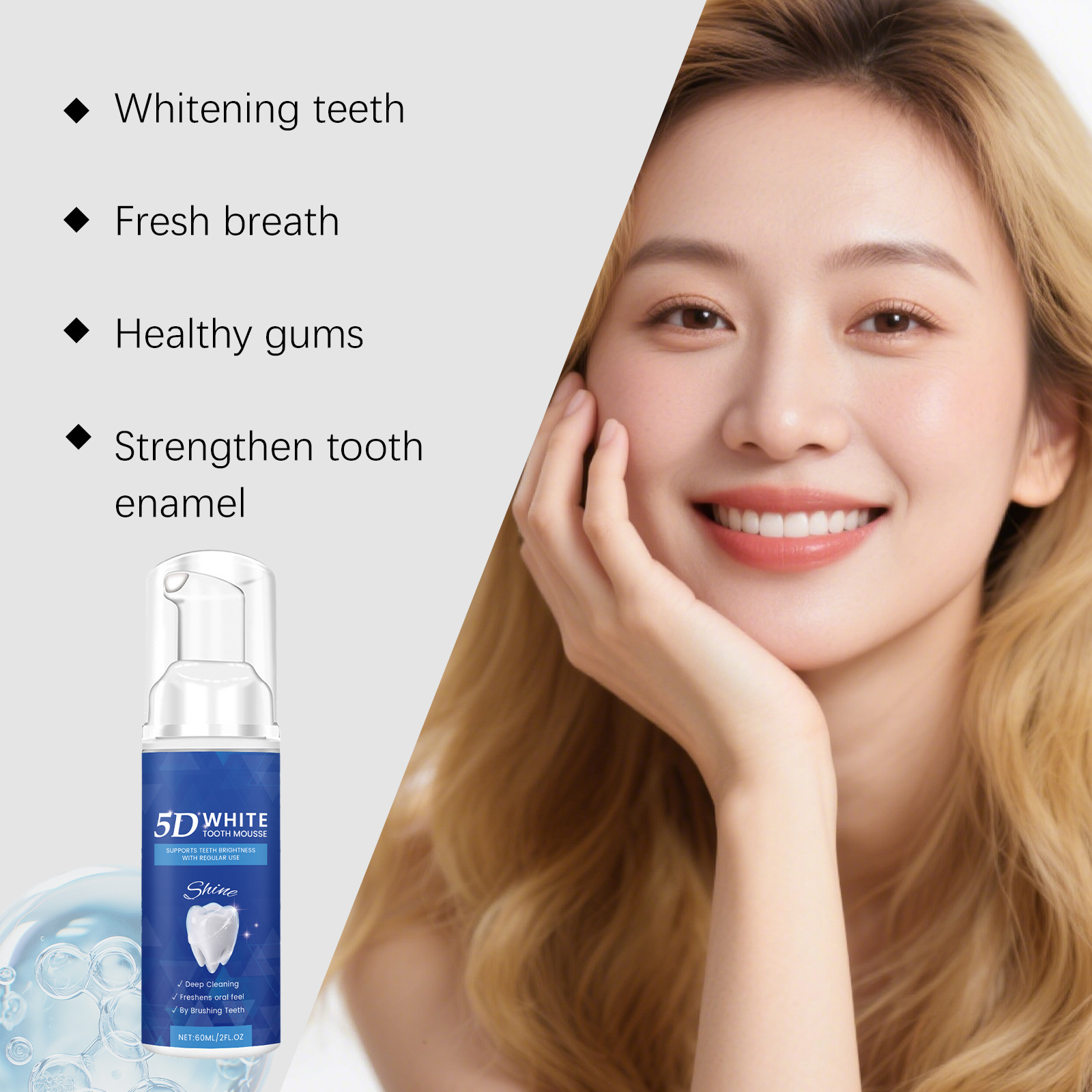亮白洁牙慕斯 温和清洁呵护牙齿洁净日常舒适口腔清新护理慕斯