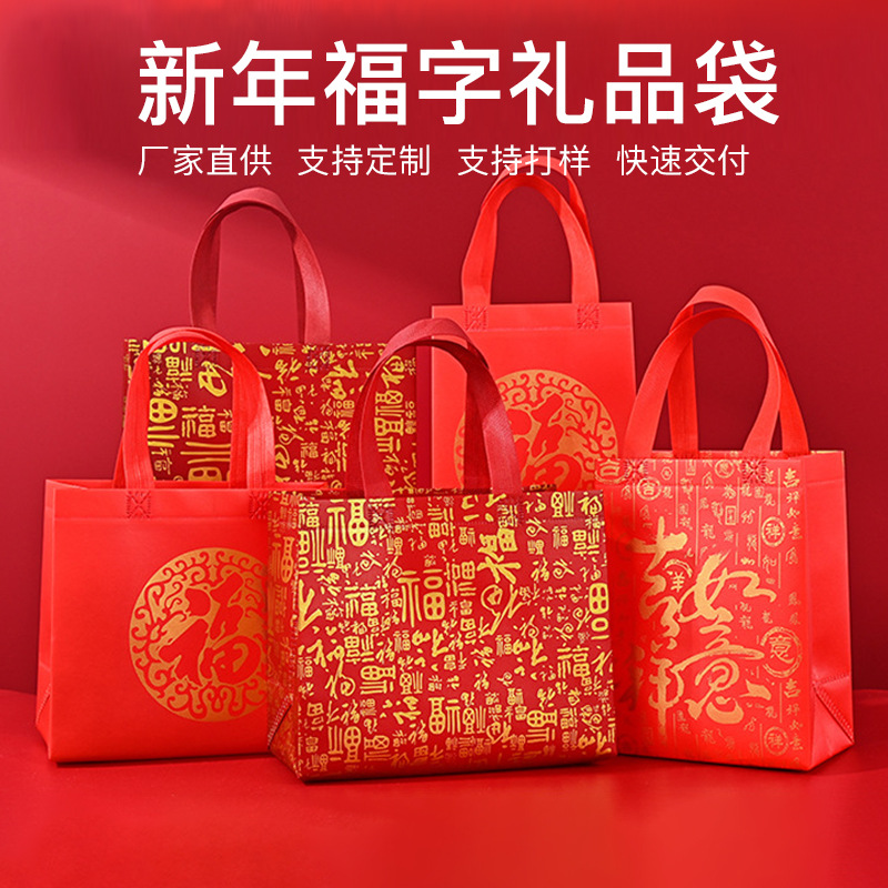 新年福袋礼品袋春节元旦礼品袋年货送礼包装袋无纺布手提袋定制