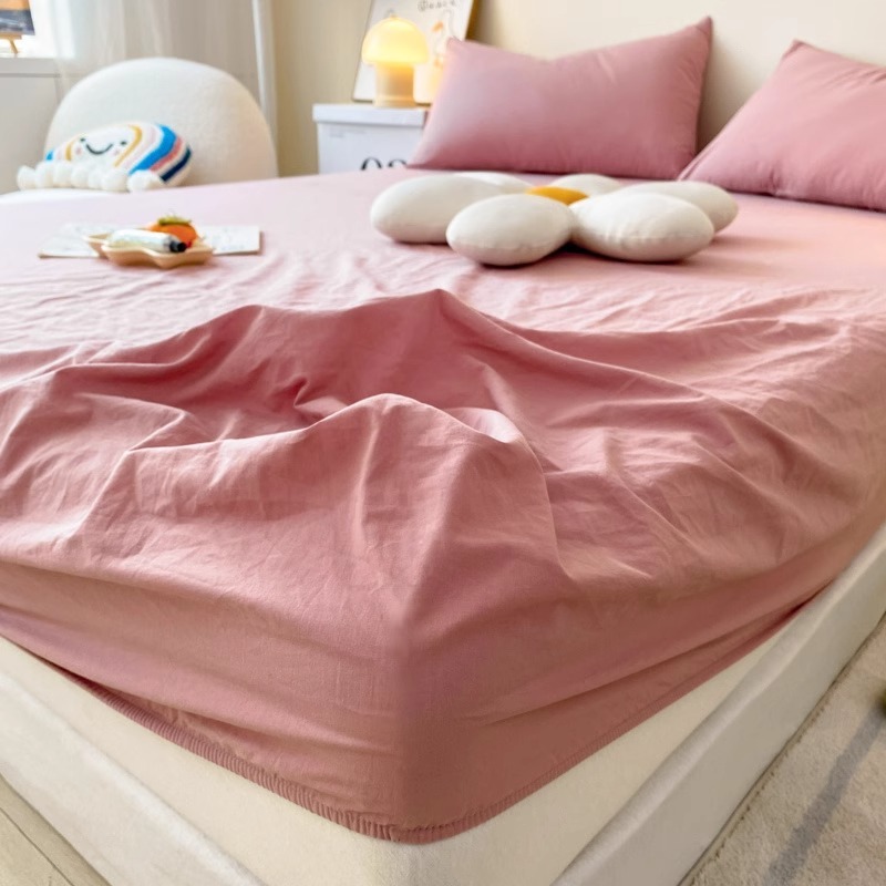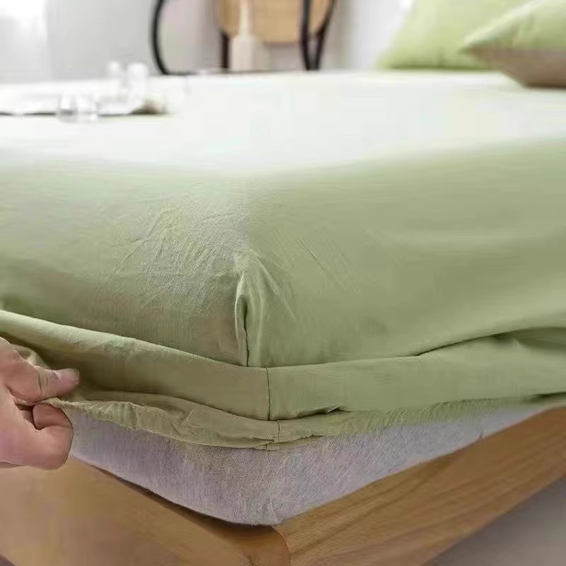 四季通用格子床笠单件色床笠松紧带床笠床罩保护单人提花平纹扎染