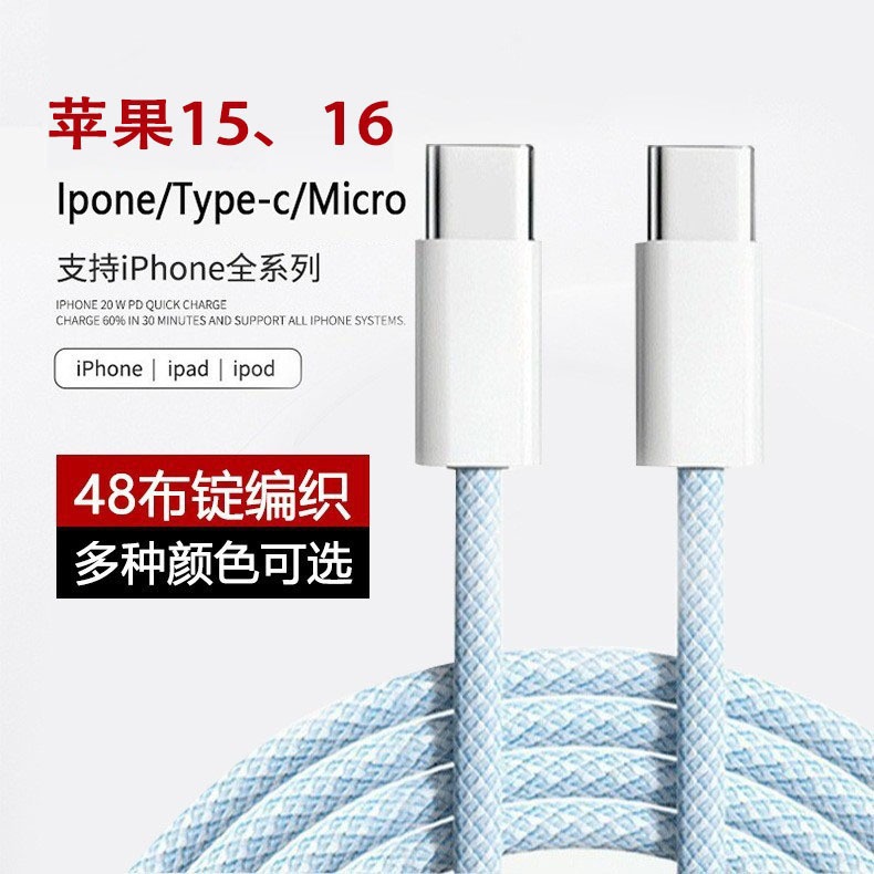 适用苹果15 16PD27W66W超级快充双type-c编织线数据线华为小米ios