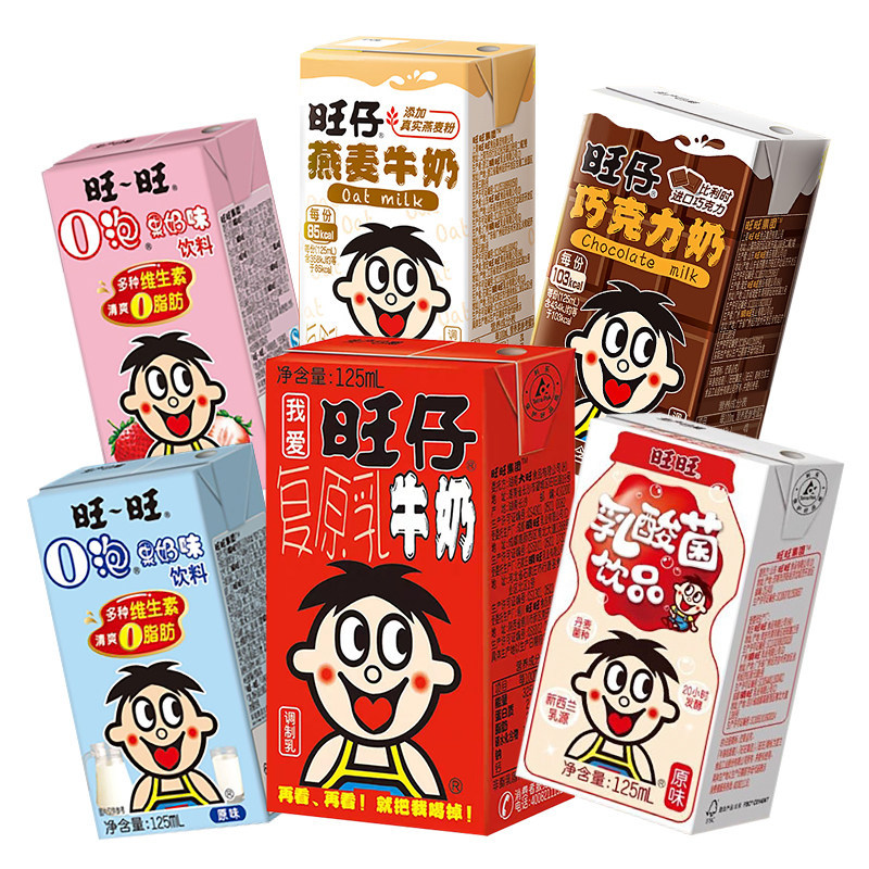包装规格 | 旺仔巧克力奶125ml*8(两条装) | | 包装规格 | 复原乳原味奶125ml*8(两条装) |