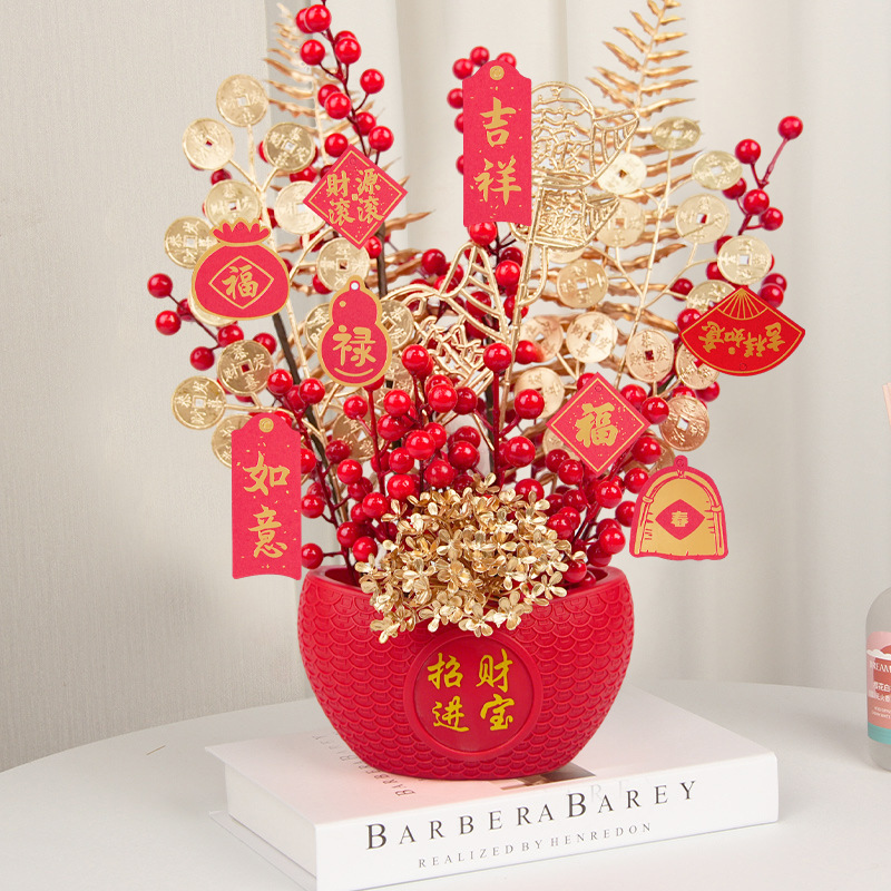 福桶摆件发财红果仿真假花抱抱桶年宵花客厅新年装饰乔迁开业礼物