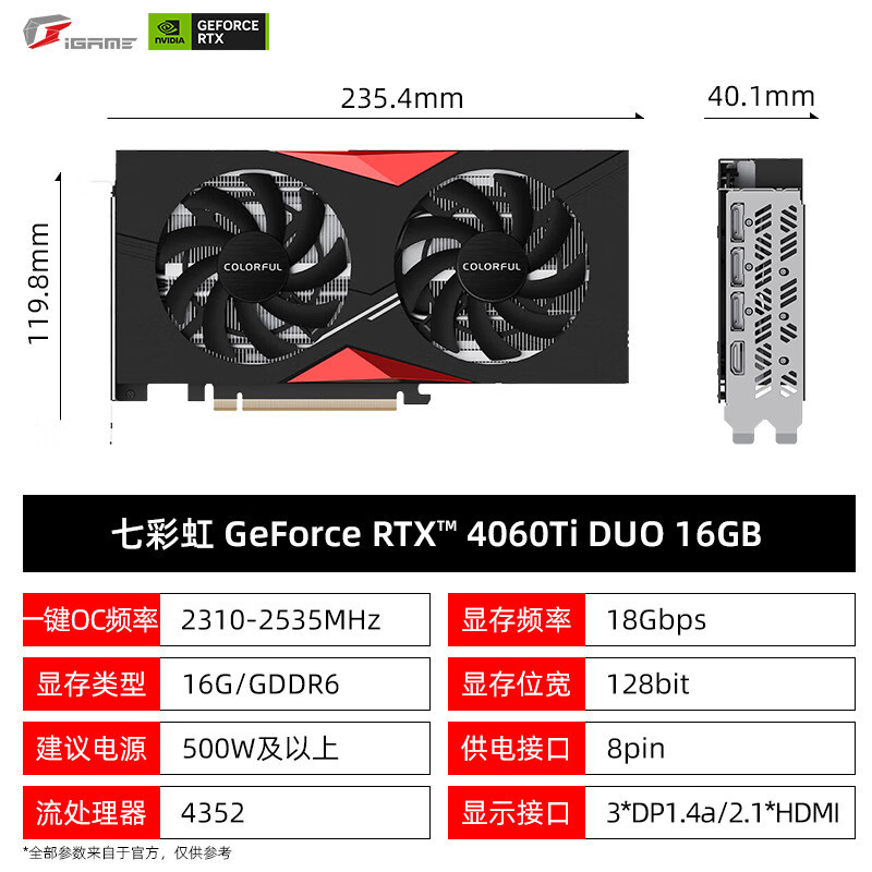 型号七彩虹战斧GeForceRTX4060Ti DUO 16GB