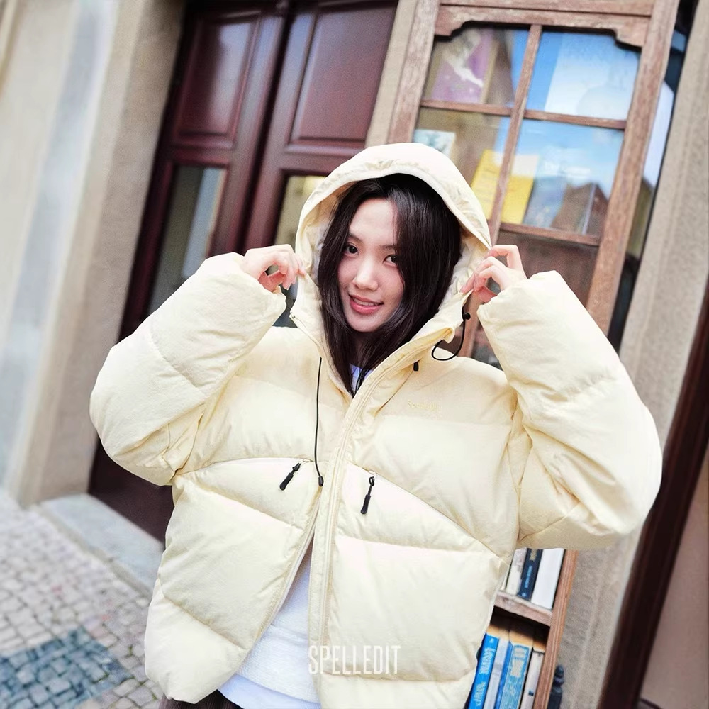 冬季新品口袋连帽羽绒服spelledit加厚休闲百搭短款羽绒外套女