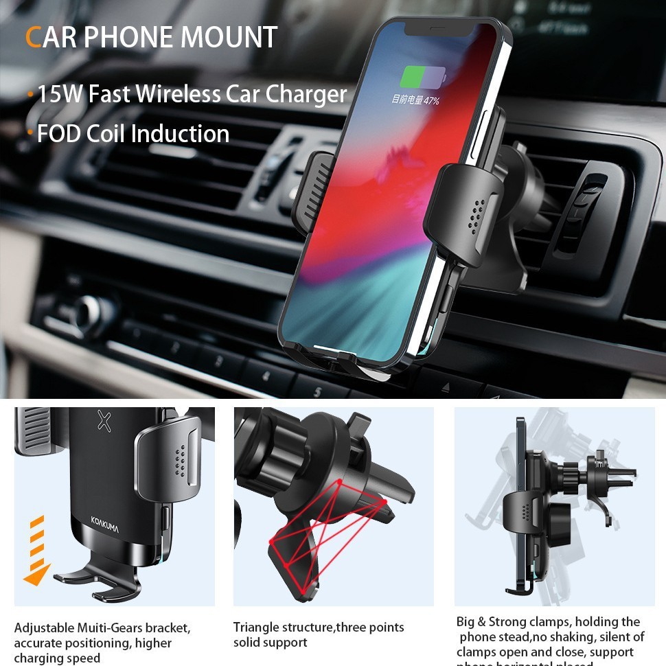 出风口支架15W快充 自动感应FOD车载无线充电器 智能车载手机支架