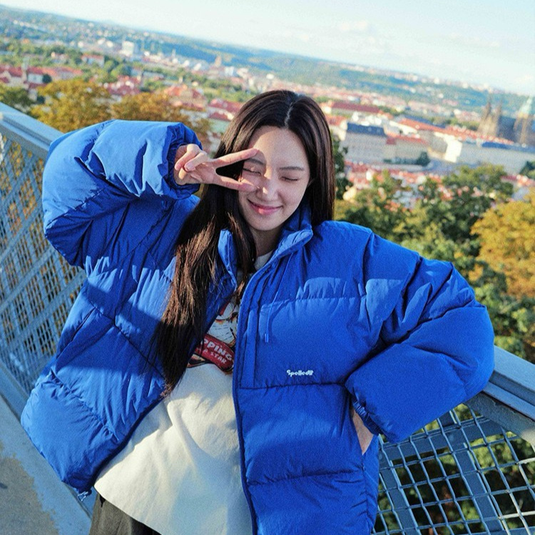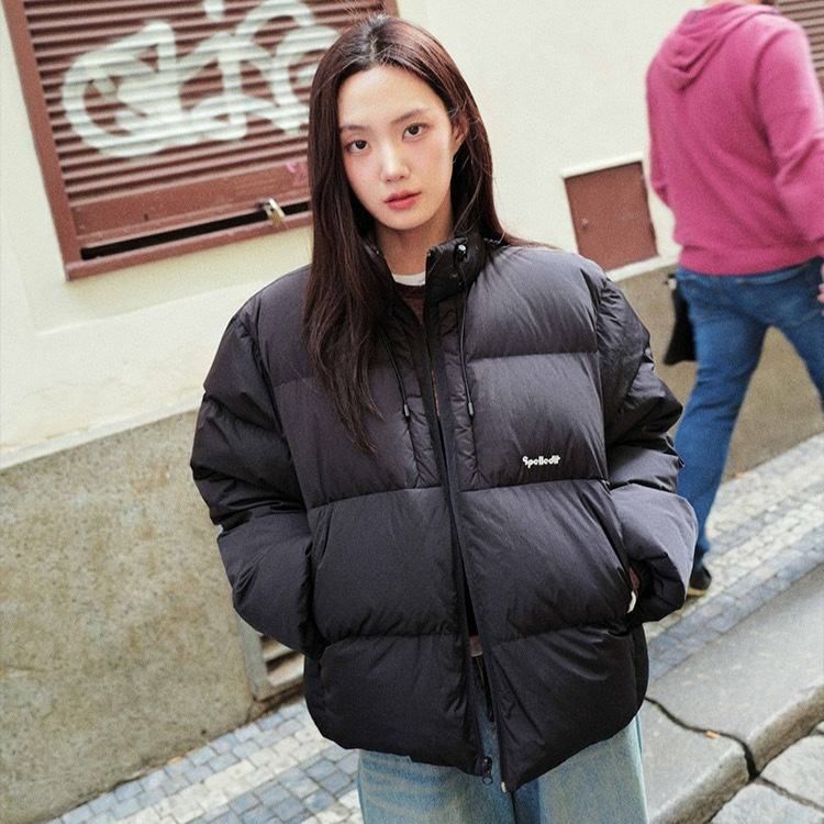 现韩国新款羽绒服spell立领短款加厚休闲加厚字母刺绣拉链外套女