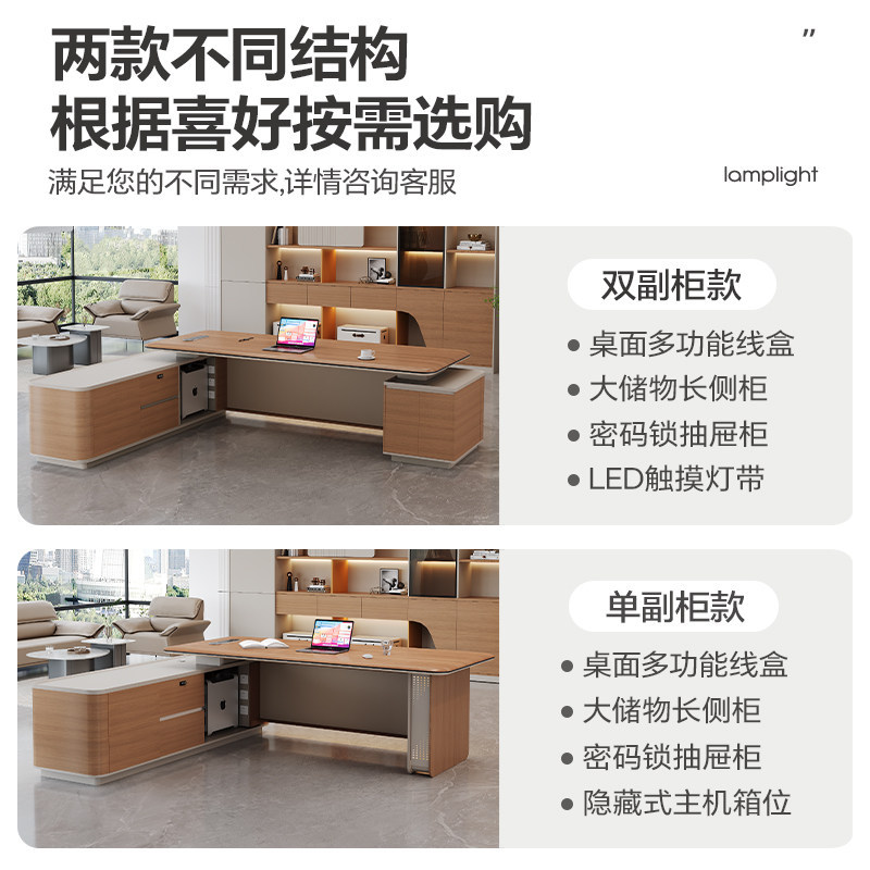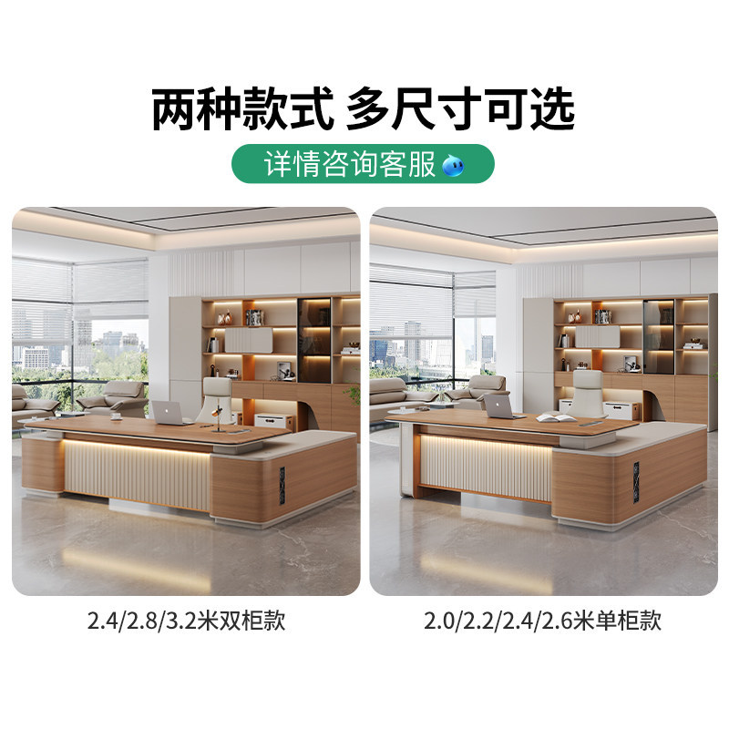 | 颜色 | 2.4米单柜老板桌+桌面配多功能线盒+高端密码锁+LED灯带 【免费送装】 | 颜色 | 2.6米单柜老板桌+桌面配多功能线盒+高端密码锁+LED灯带 【免费送装】 |