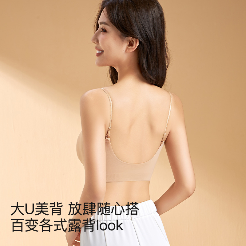 春夏新款粉底液隐形美背内衣细肩带加厚胸垫小胸显大聚拢无痕抹胸