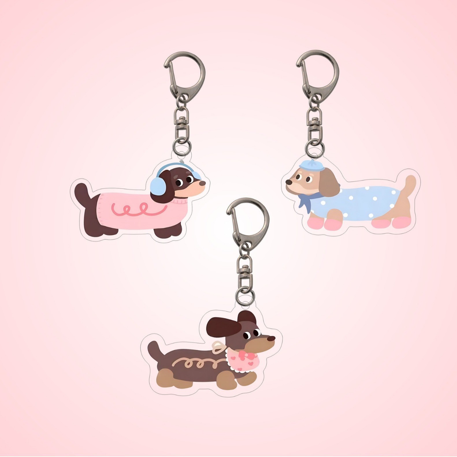 现货批发腊肠狗钥匙扣可爱露丝同款亚克力包包挂件情侣款汽车挂饰