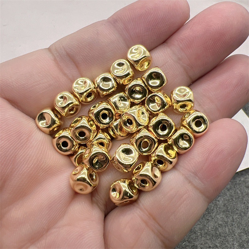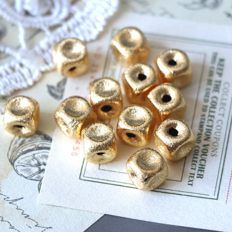 新款金色拉丝凹凸不平四方珠散珠手工diy项链饰品配件隔珠串珠