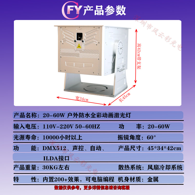 规格60瓦防水全彩激光灯(舞台/景区专用)