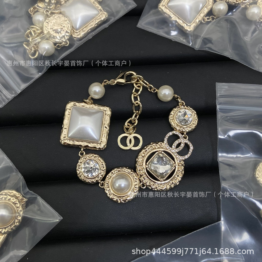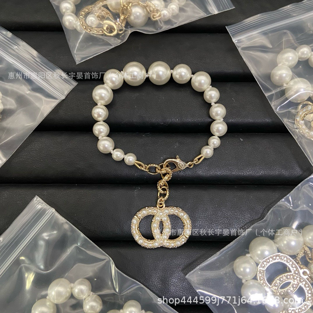 香家新款珍珠蝴蝶结双c字母手链时尚日常百搭轻奢质感手链批发女
