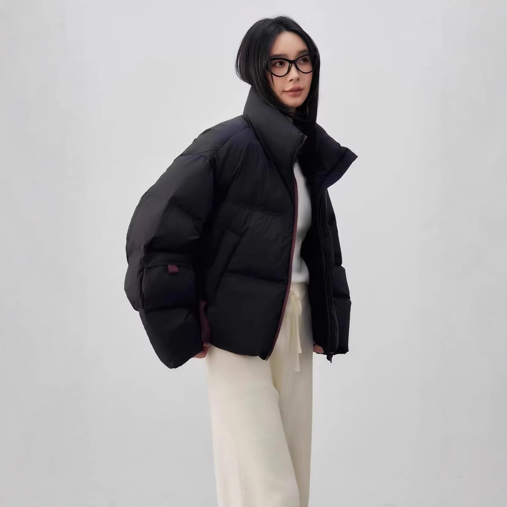 泡芙蓬松2025冬季羽绒服女短款白鸭绒韩版立领宽松90白鸭绒面包服