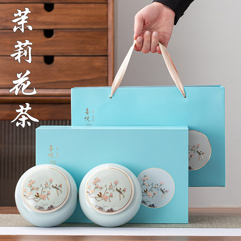 茶叶茉莉花茶礼盒装新茶飘雪绿茶浓香型端午过年节日送礼长辈花茶
