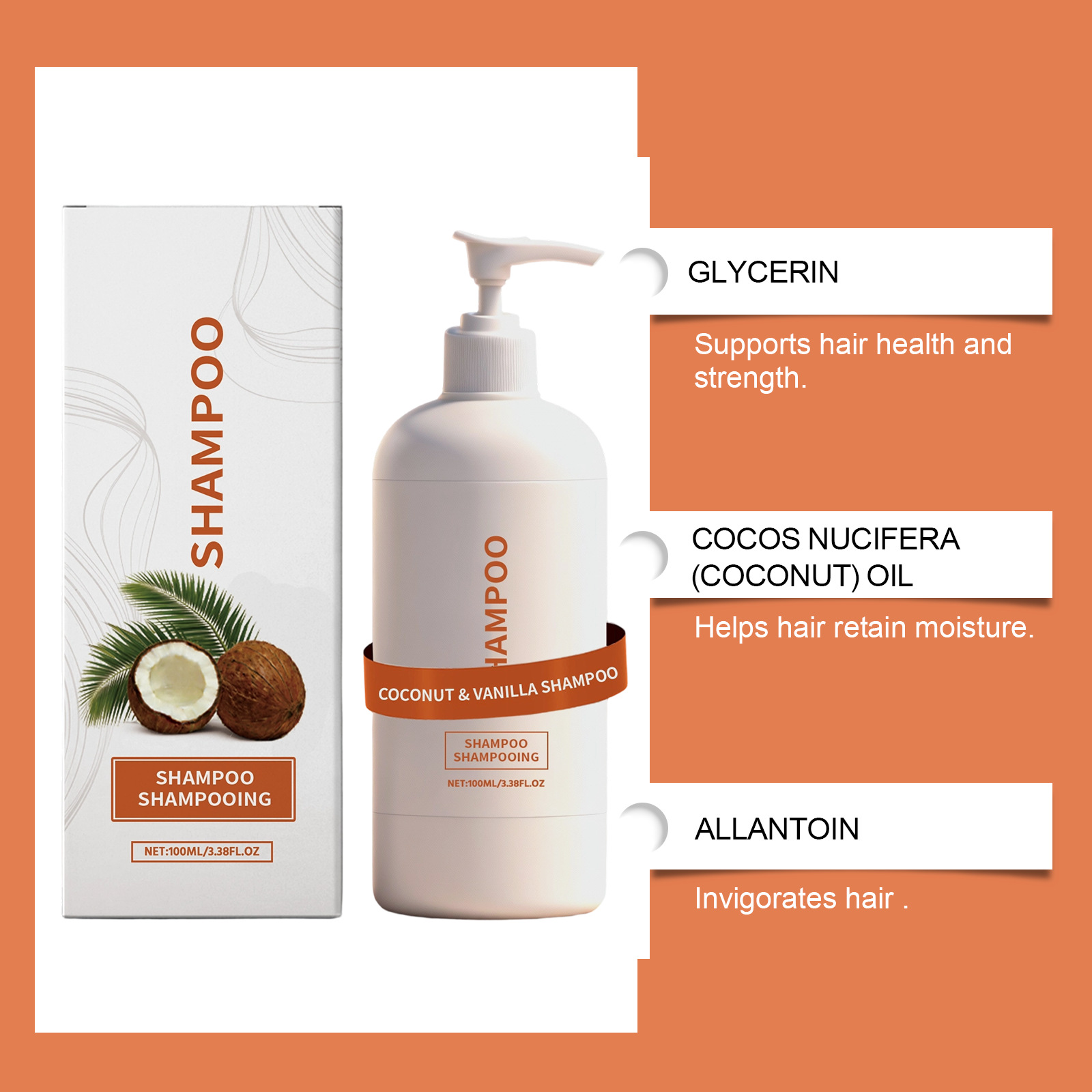 椰香香草洗发水 植萃控油蓬松毛发清洁补水柔顺护理清爽不黏腻