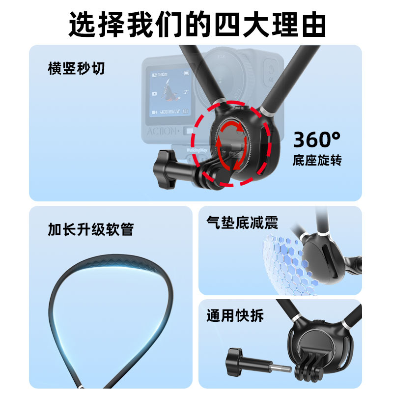 大疆运动相机苹果视角华为小米手机胸前固定挂脖支架第一人称直播