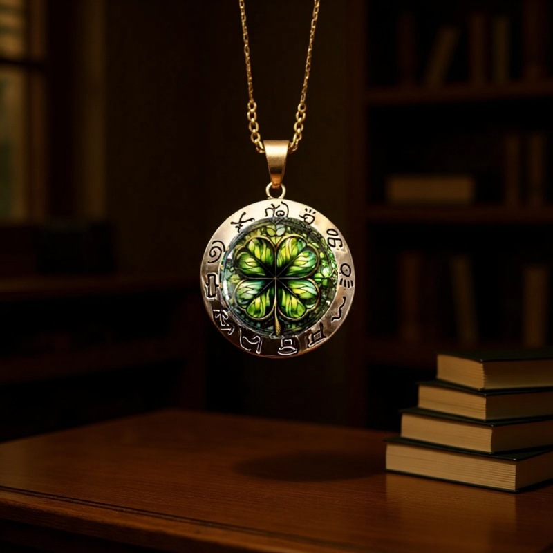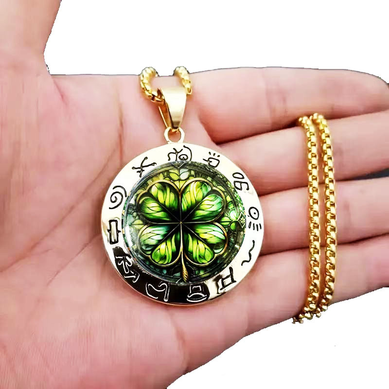 跨境时尚玻璃绿四叶草吊坠项链欧美个性潮饰饰品批发可来图定