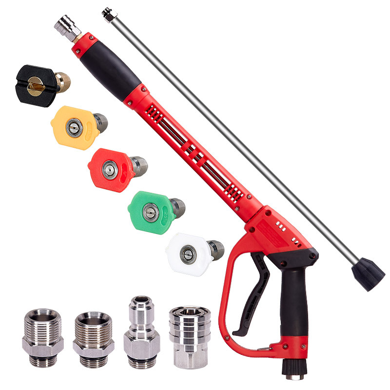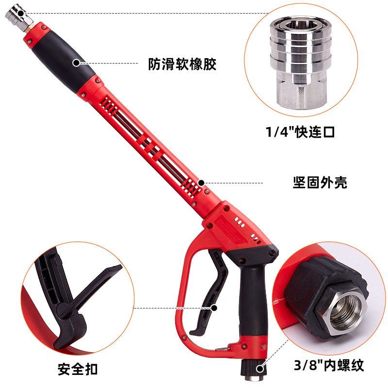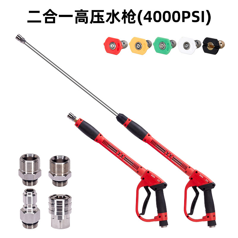 跨境高压清洗机水枪黄铜阀不锈钢杆300bar喷枪二合一洗车水枪配件