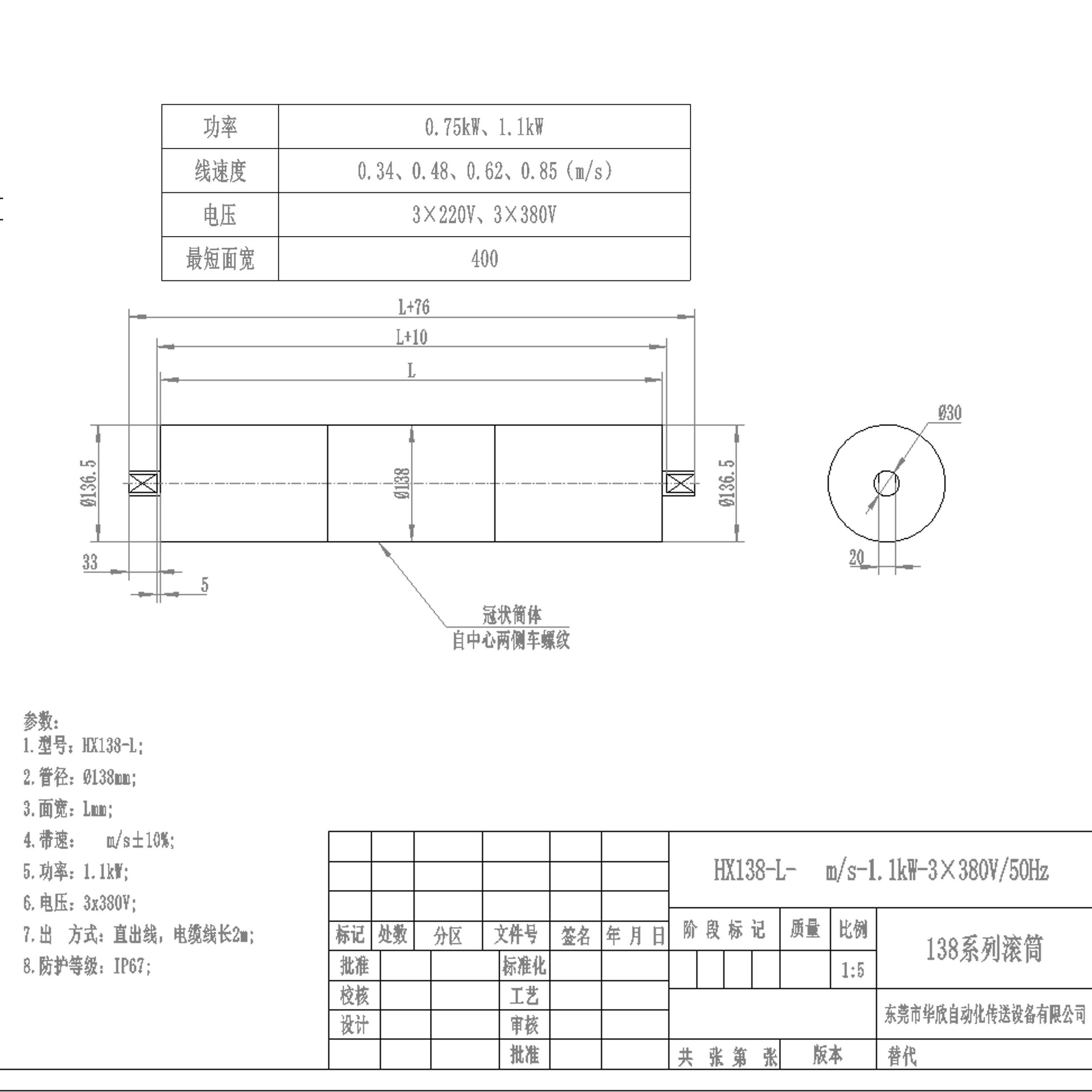 不锈钢交流电动滚筒三相220V 380V 0.75kw1.1kw大功率直径138辊筒