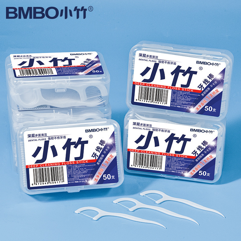 小竹牙线高弹力牙线棒多功能顺滑一次性剔牙棒家庭装超细牙线盒装