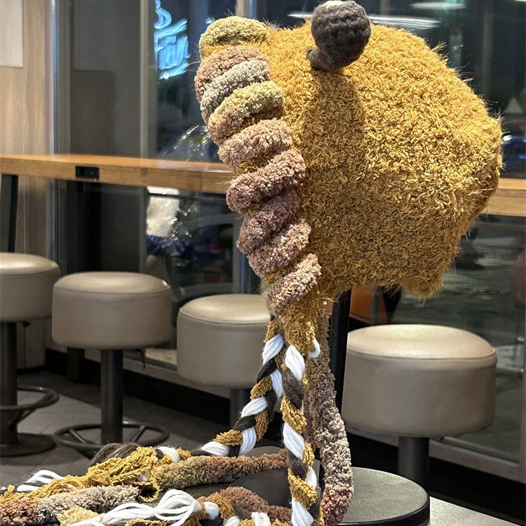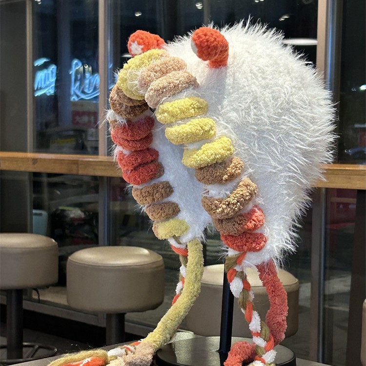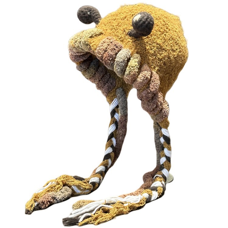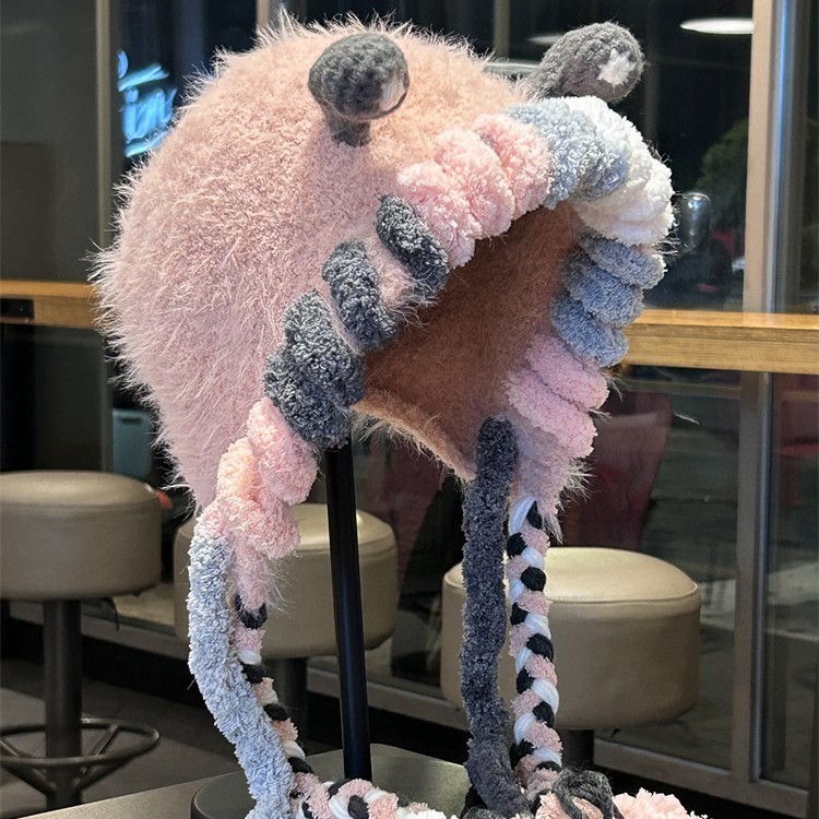 可爱卡通小怪兽毛绒帽子女秋冬季加厚保暖护耳帽骑车防风包头帽子