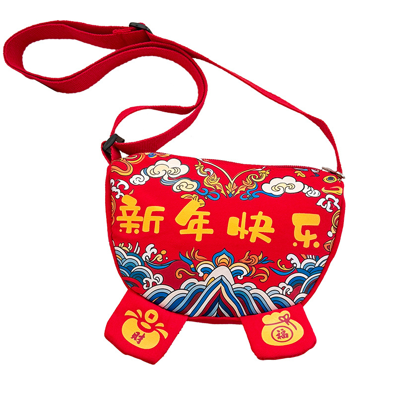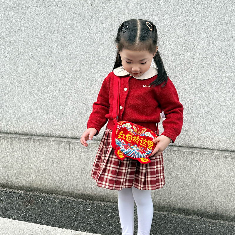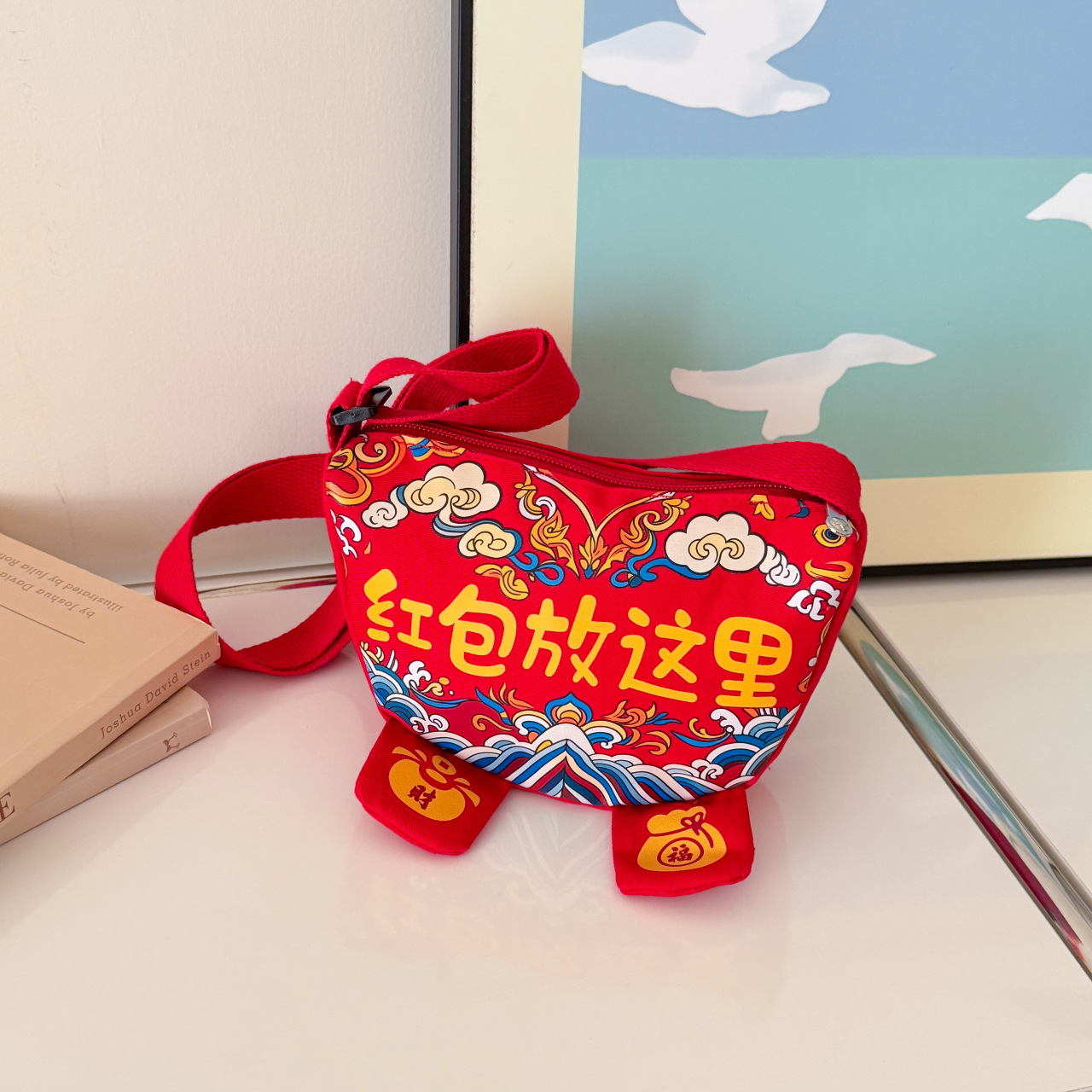 喜庆儿童包包2026新年红色拜年零钱包中国风可爱男女宝宝压岁钱包