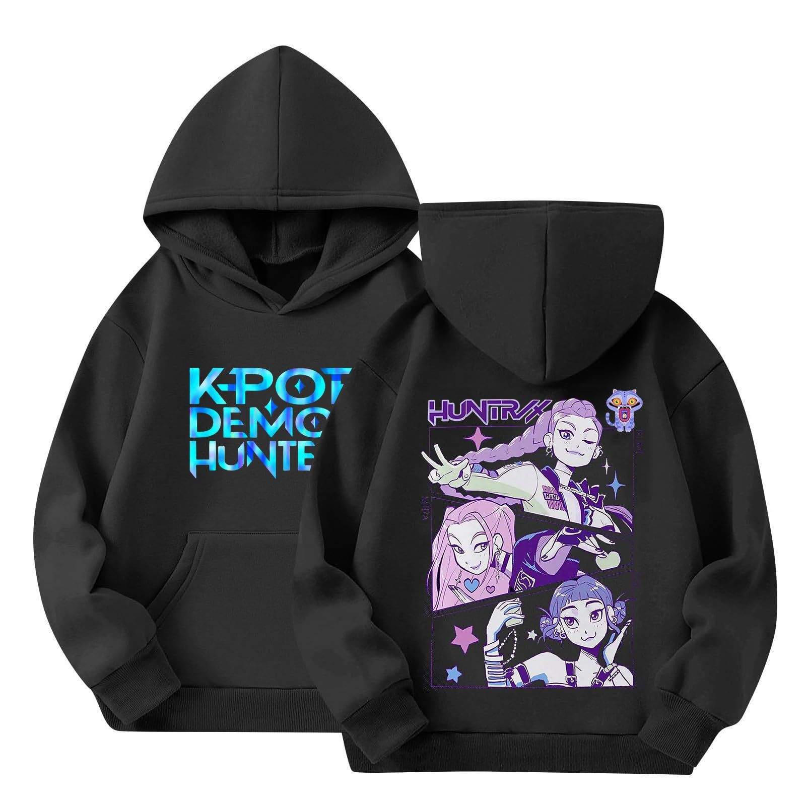 KPop动漫周边印花儿童连帽衫跨境秋冬休闲加绒卫衣宽松长袖