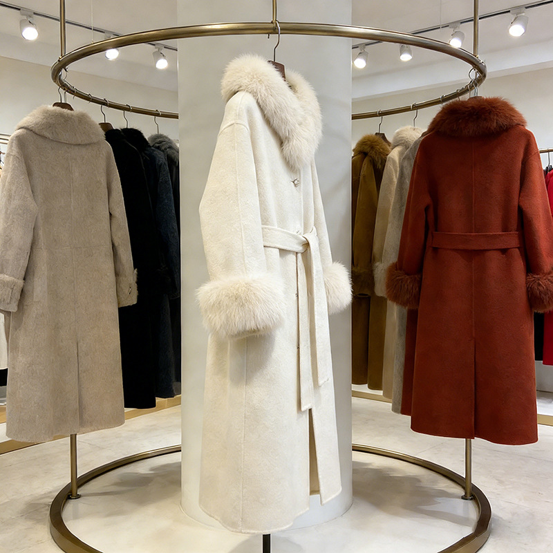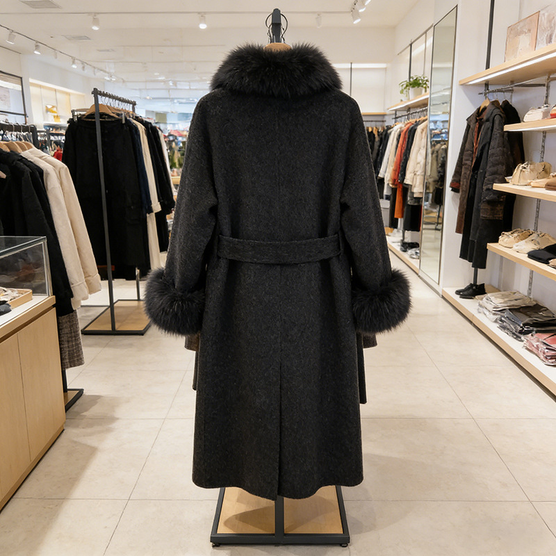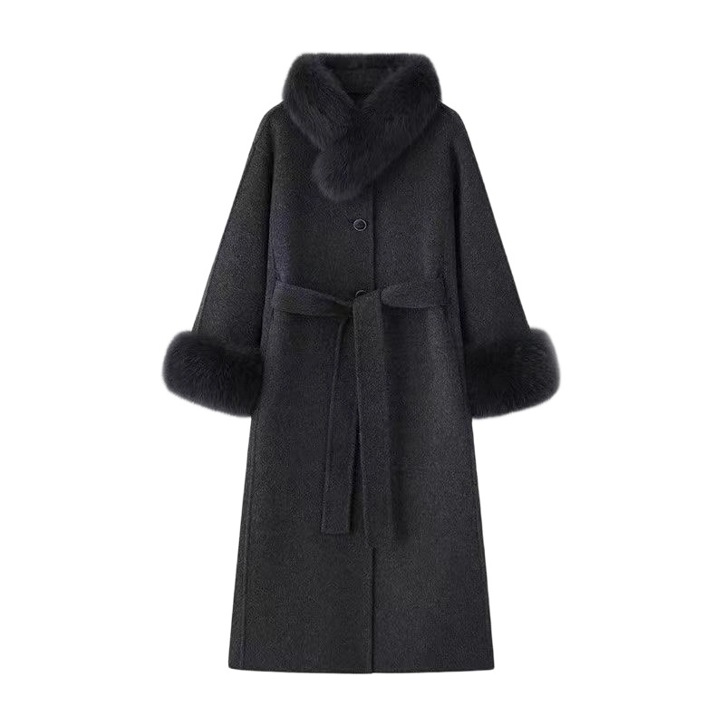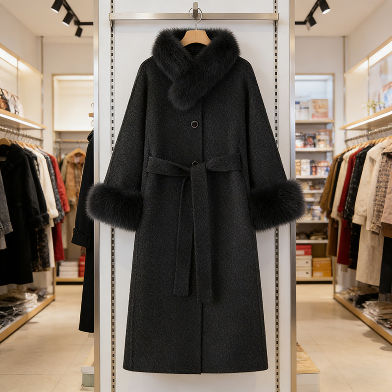 羊毛呢子外套女2026年秋冬气质加长款贵气毛领时尚纯色慵懒风