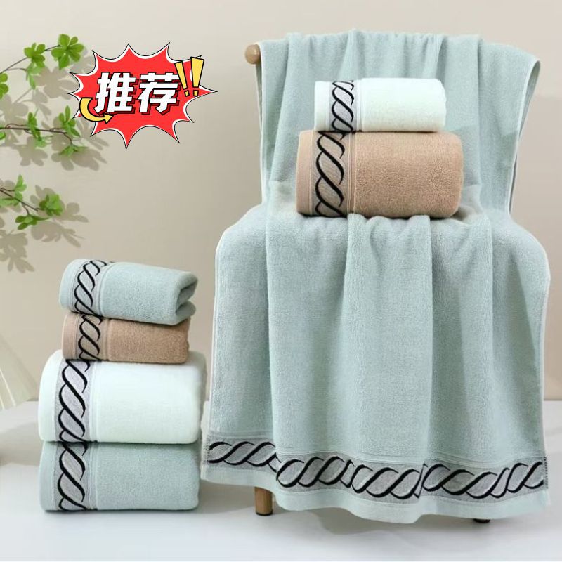 工厂批发毛巾浴巾套巾跨境货源家用吸水不掉毛成人大澡巾刺绣LOGO