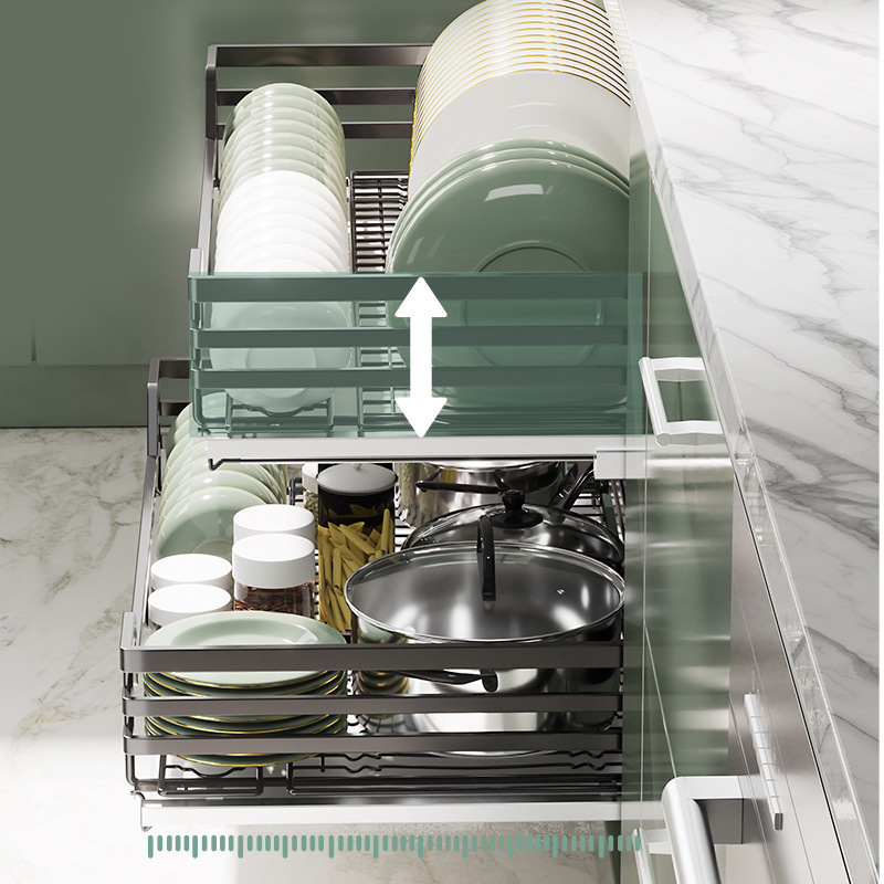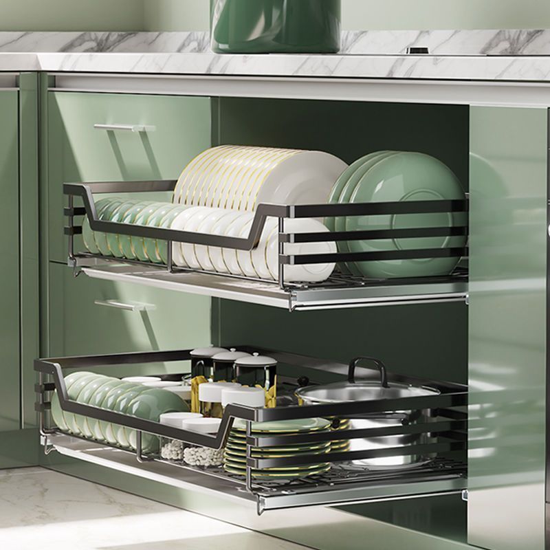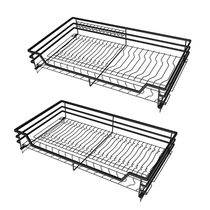 扁钢加粗大容量纳米黑双层不锈钢拉篮厨房橱柜拉蓝碗碟置物架