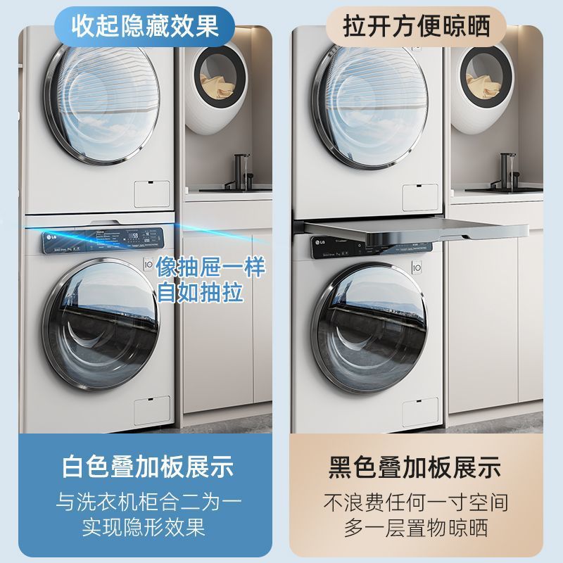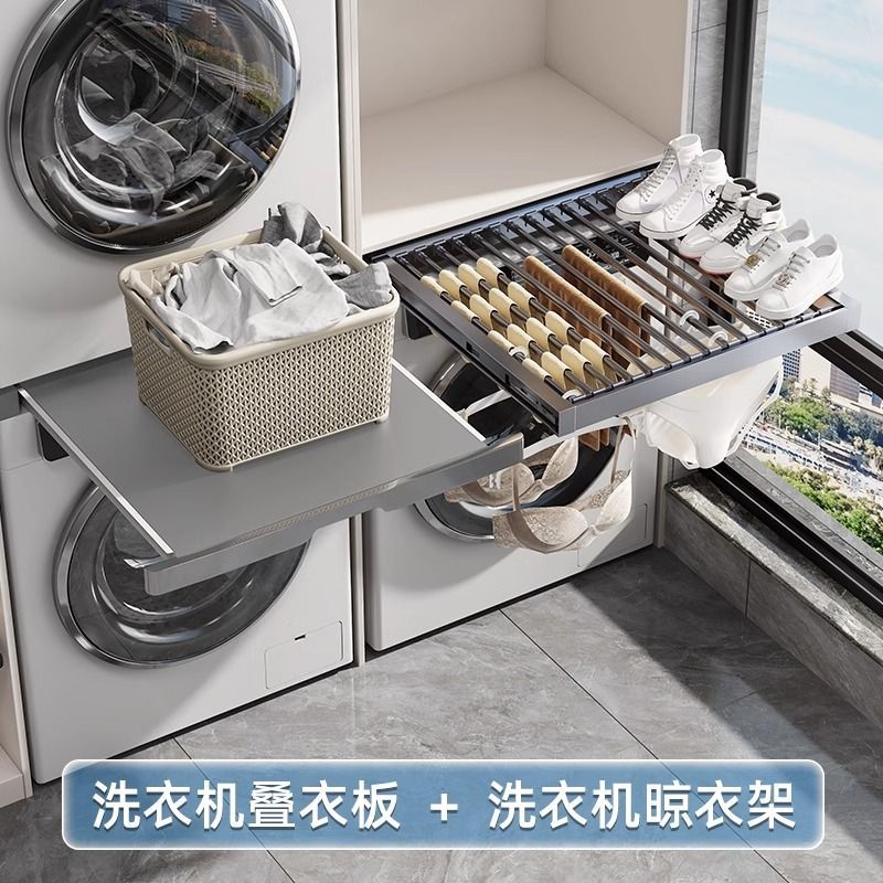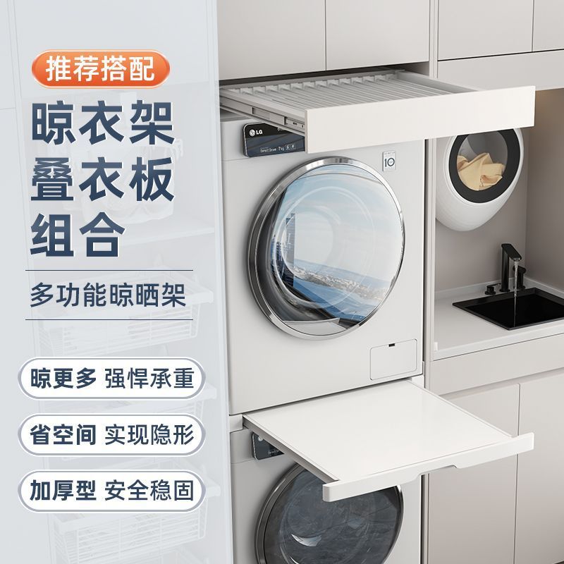 洗衣机烘干机叠放抽拉支架 隐形伸缩r推拉置物架叠衣板晾晒架