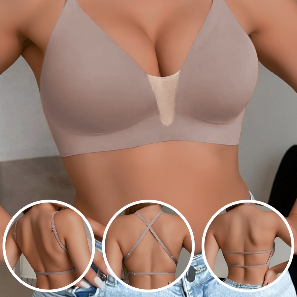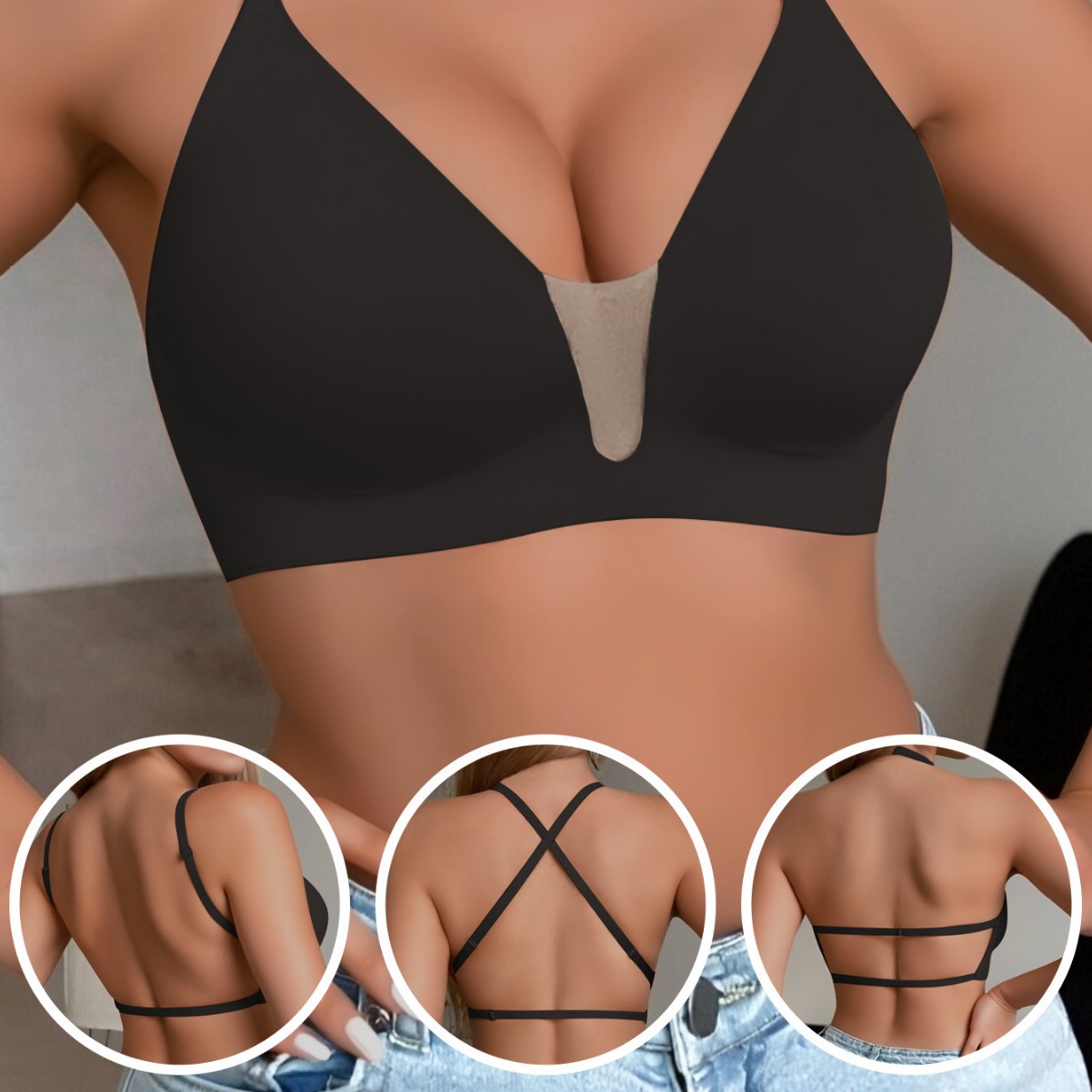 跨境U型美背内衣女大胸显小薄款吊带裙露背文胸罩抹胸防走光文胸1
