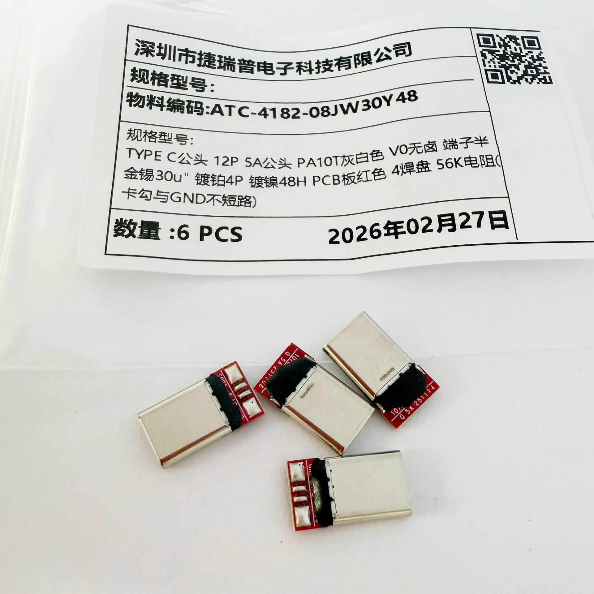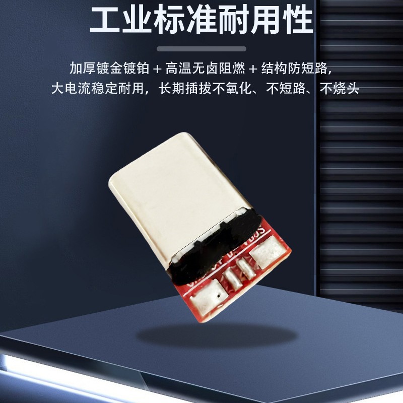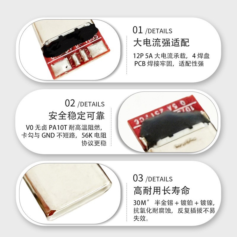 厂家TYPEC公头12P 5A连接器TP-C端子镀铂镀镍PCB红色4焊盘插头