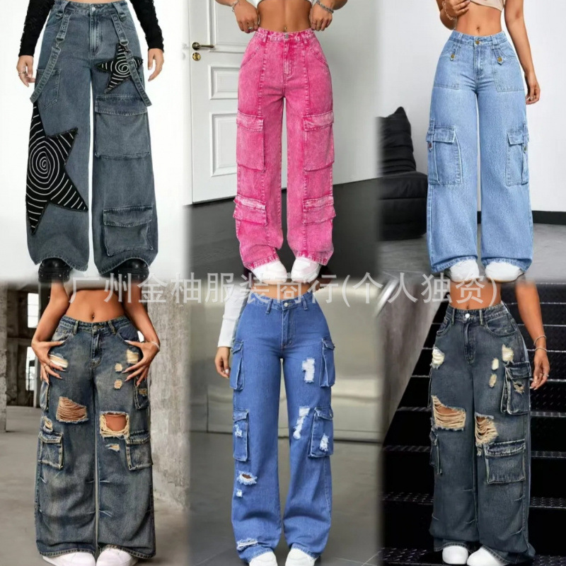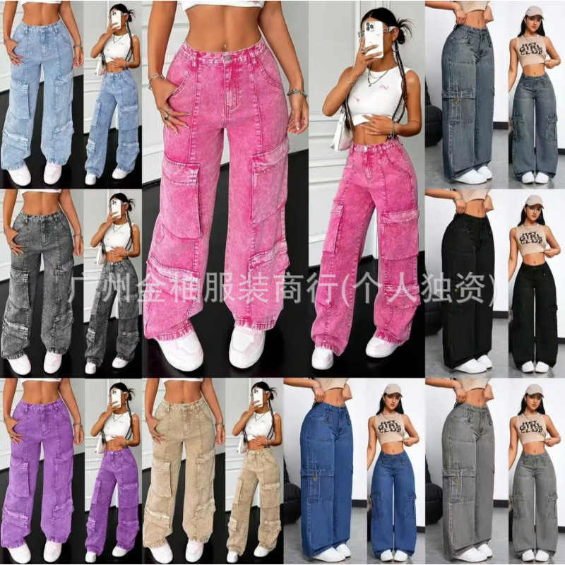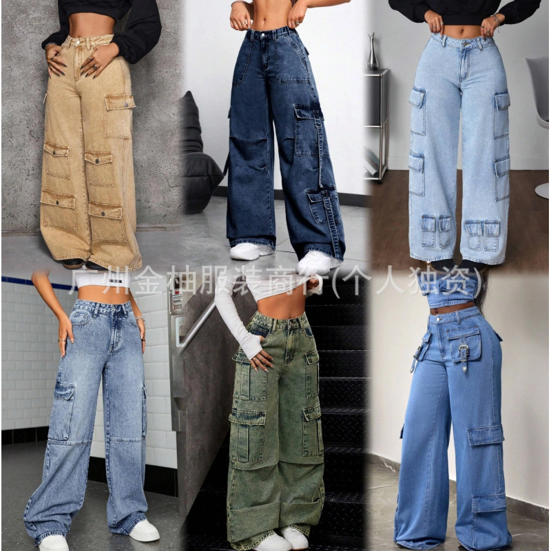 女士牛仔裤宽松多口袋工装长裤Jeans批发 Cargo pants wholesale