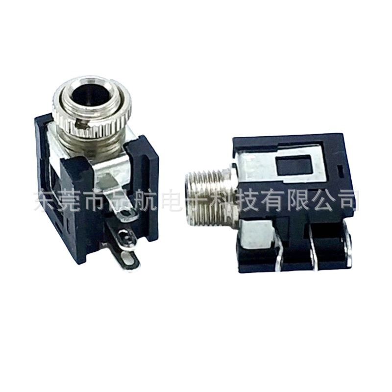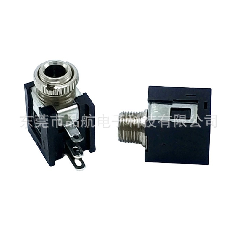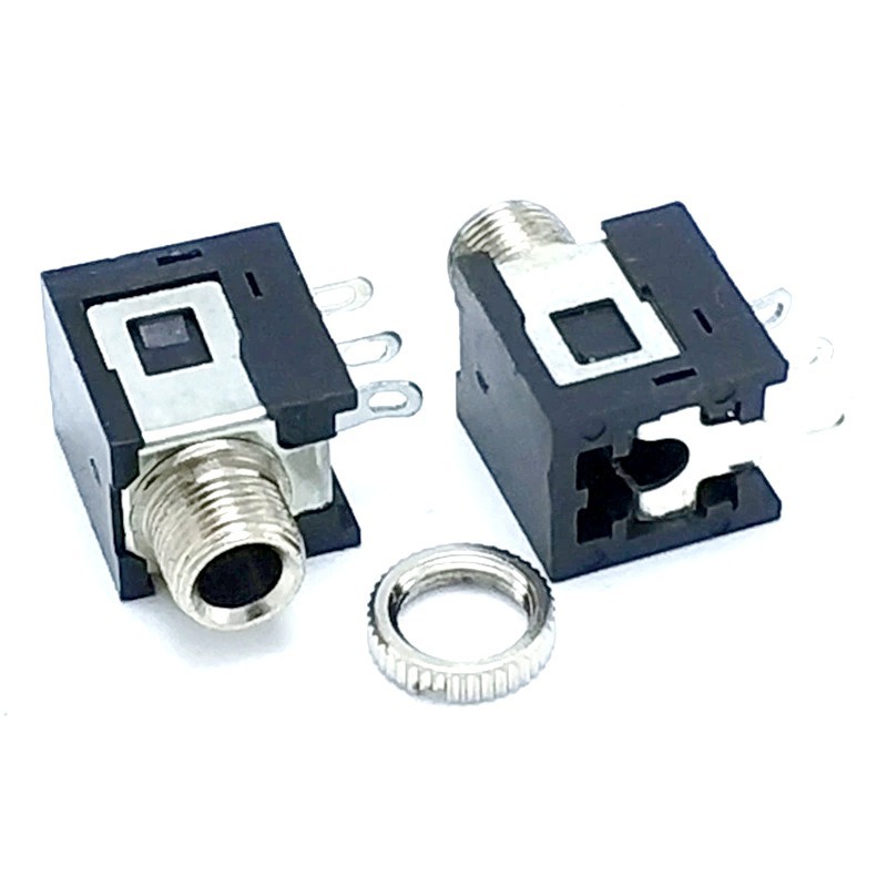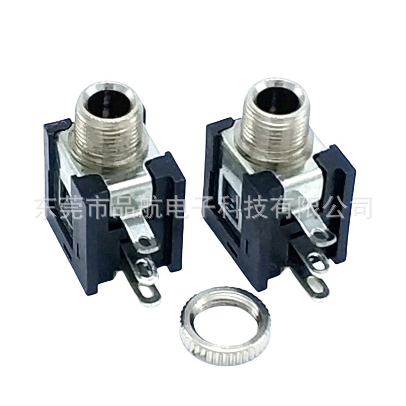 3.5mm耳机插座 PJ-376 金属光口螺纹配螺母三脚侧插卧式单声道