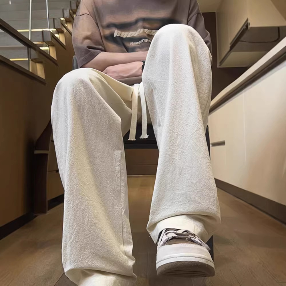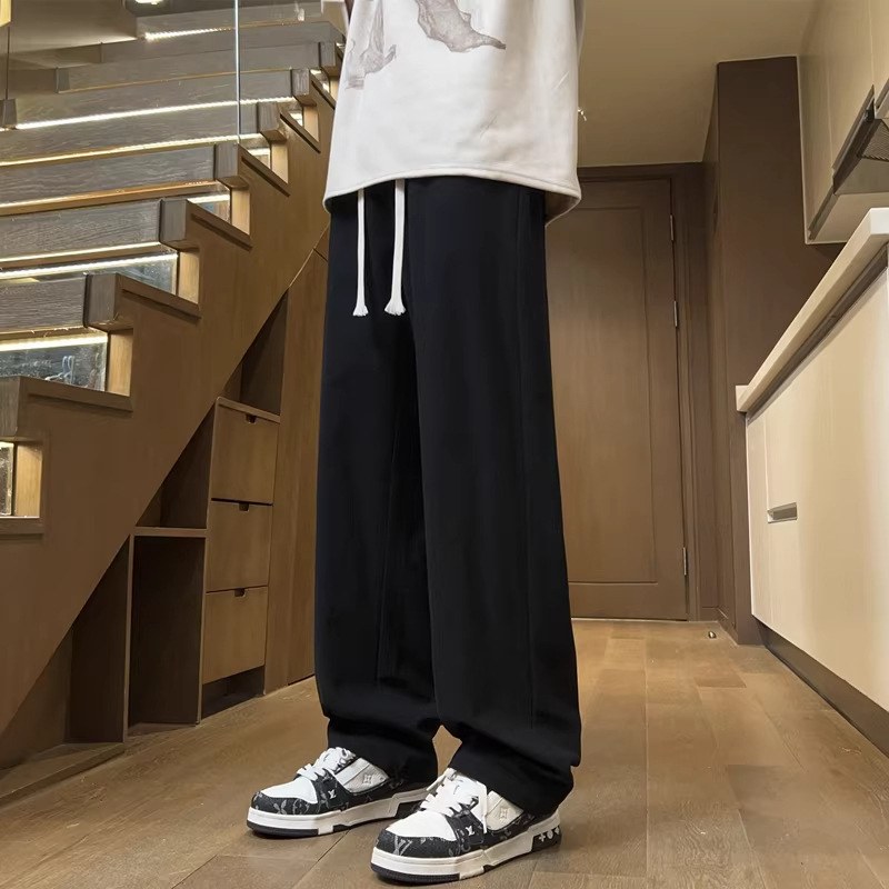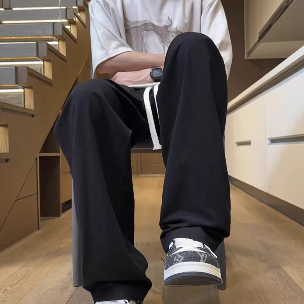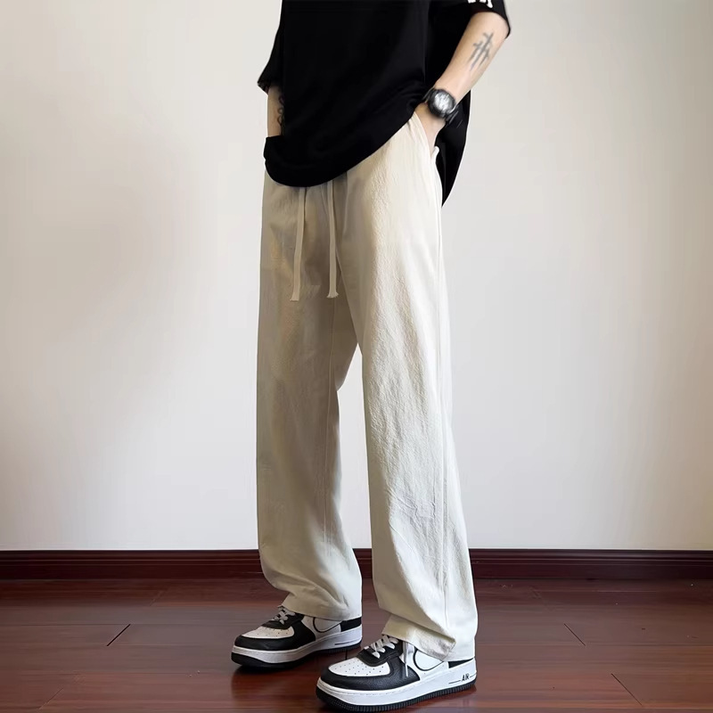 夏天直筒冰丝裤子男2026新款夏季薄款宽松长裤潮牌白色运动休闲裤