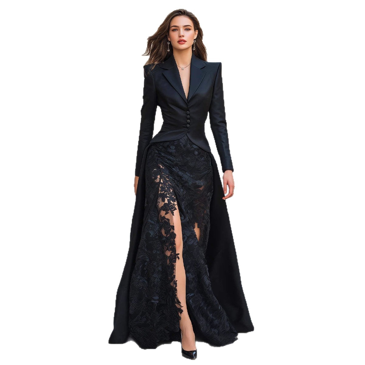2026欧美亚马逊秋季新款外贸女装长袖气质蕾丝西装领两件套连衣裙