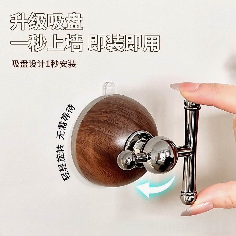 木纹吸盘挂钩免打孔门后卫生间浴室粘钩家用旋转便携强力粘胶贴