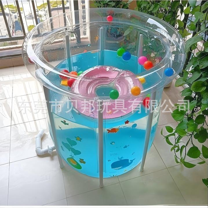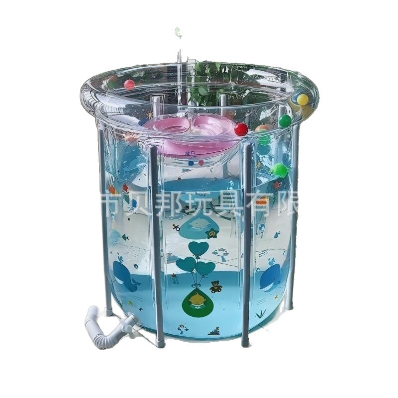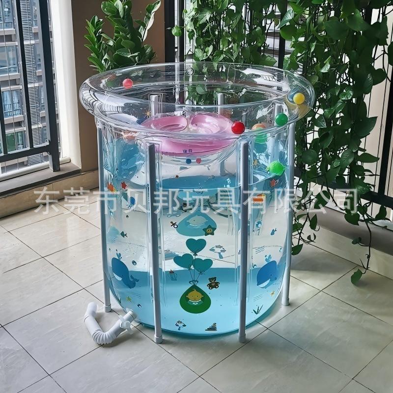 源头工厂批发透明婴儿游泳桶可折叠PVC加厚宝宝游泳池支架洗澡桶