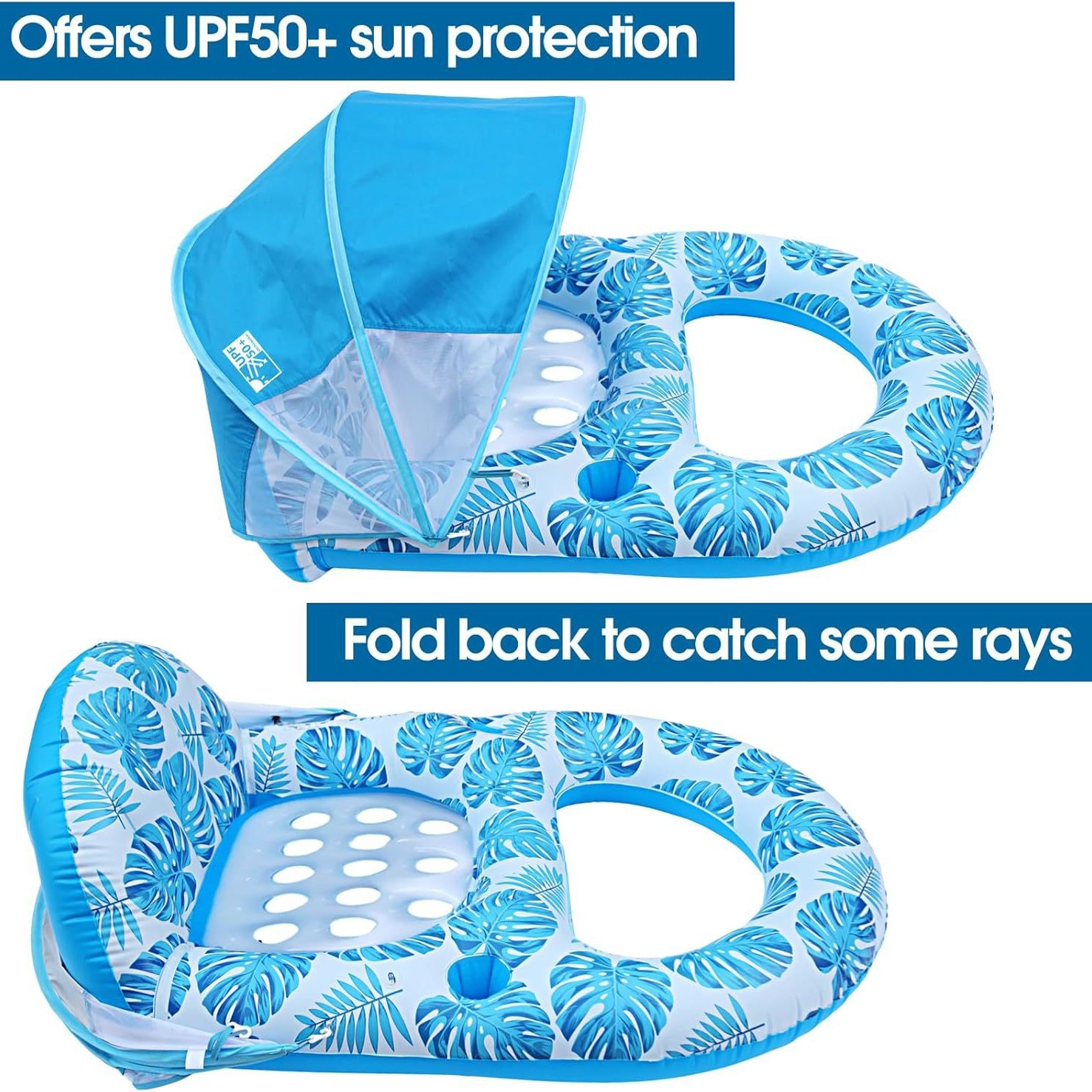 工厂定制跨境PVC充气遮阳浮床成人游泳加厚靠背带遮蓬水上漂浮椅