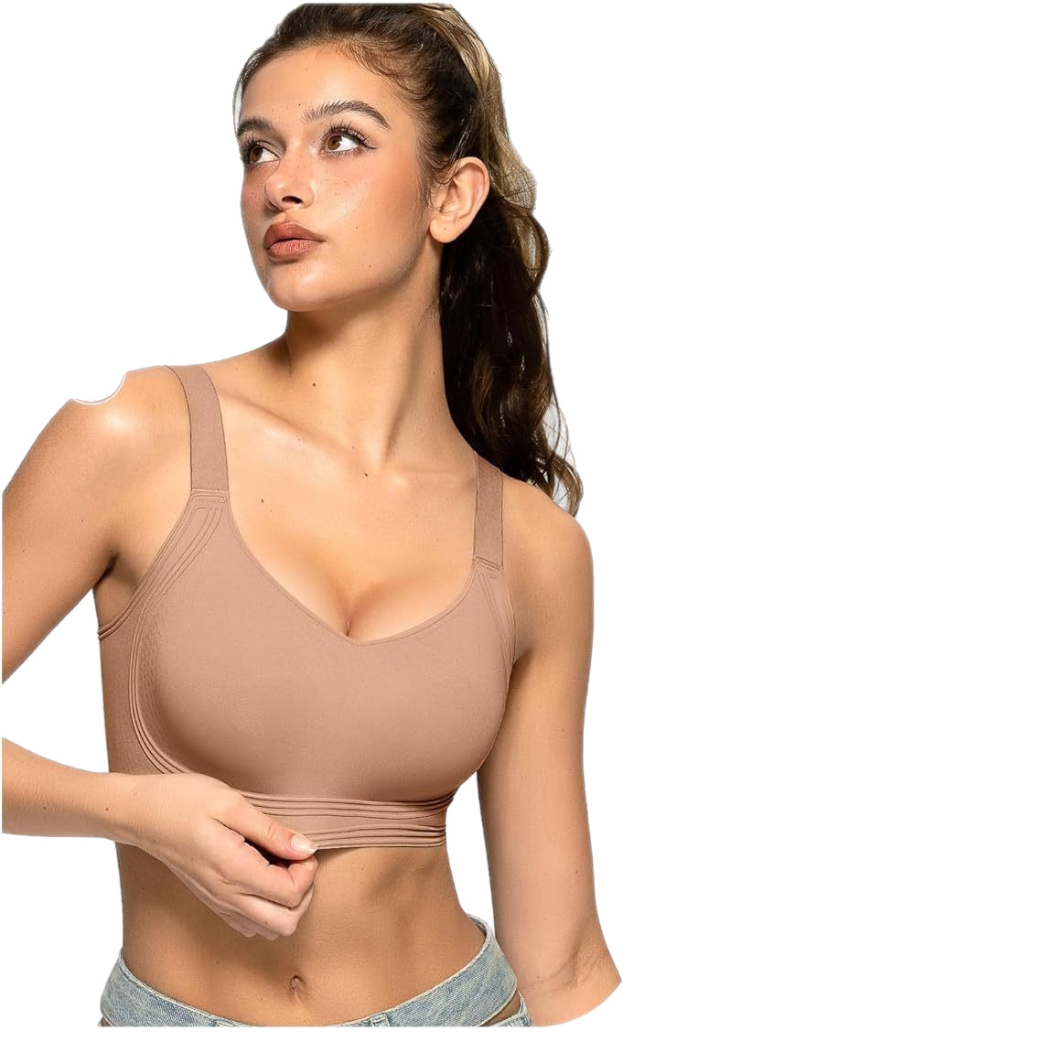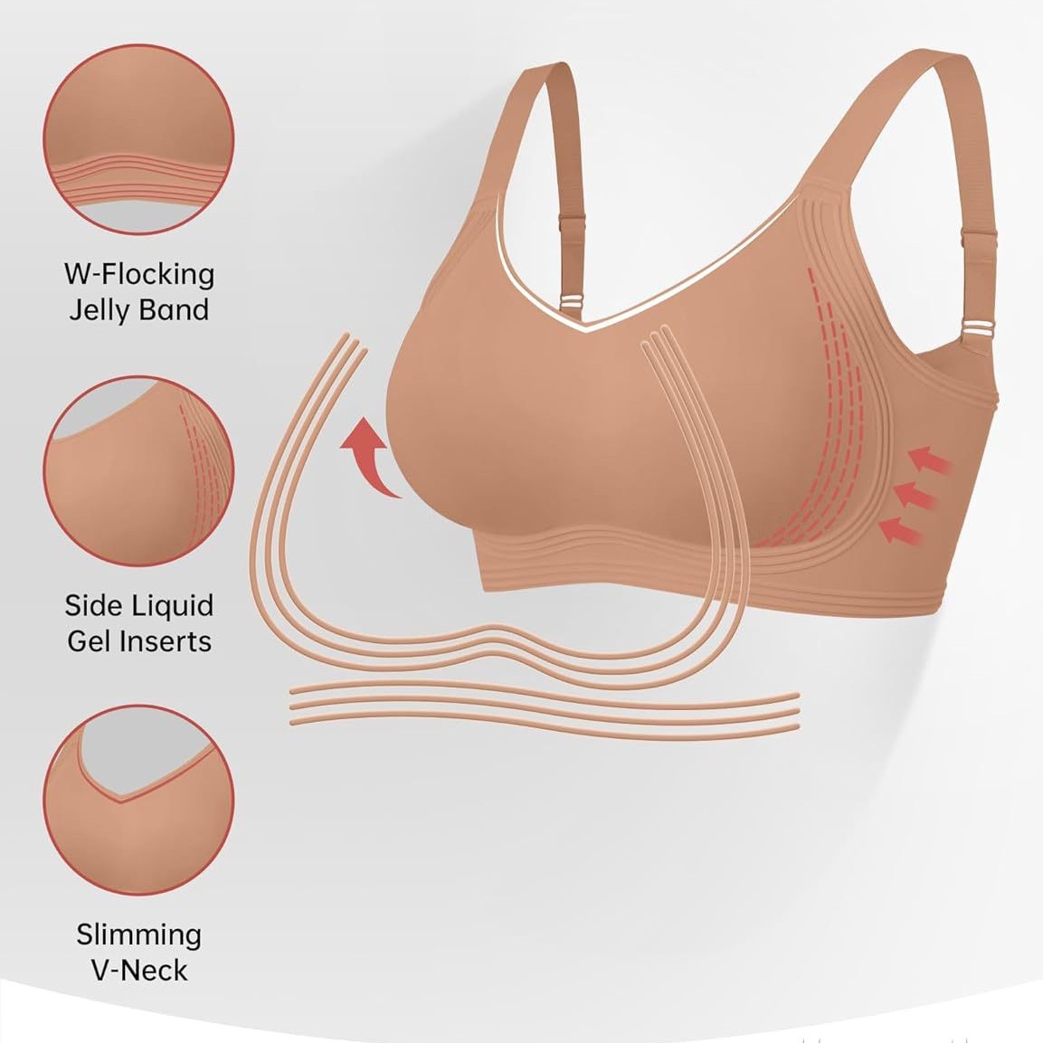 OEAK 女式无缝聚拢文胸无钢圈全覆盖防松弛舒适 V 领文胸无钢圈日