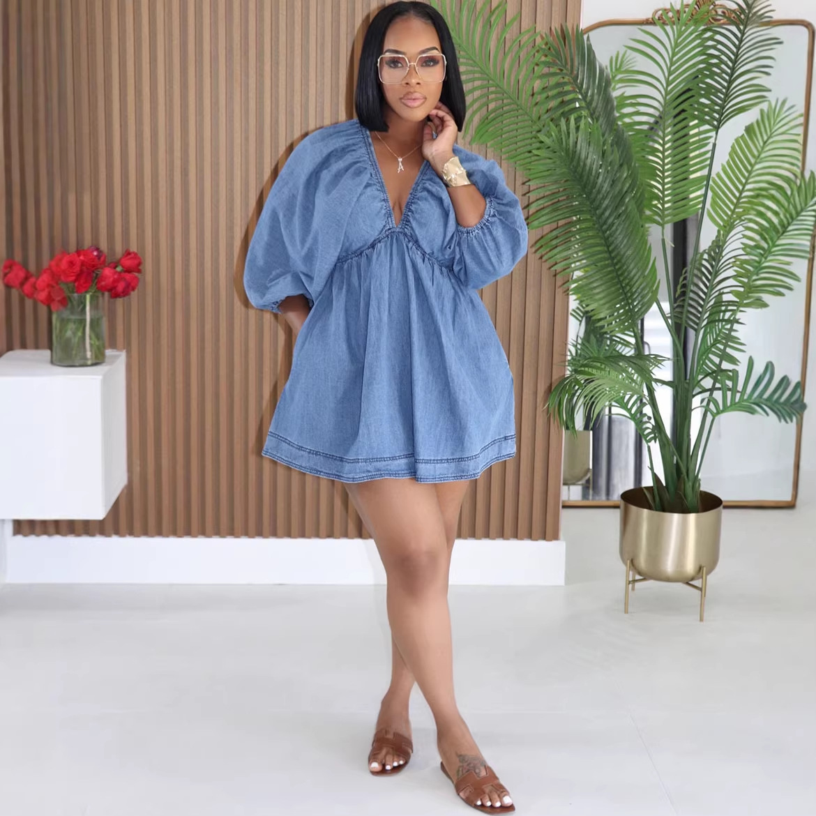 | 领型 | V字领 | 袖型 | 灯笼袖 |