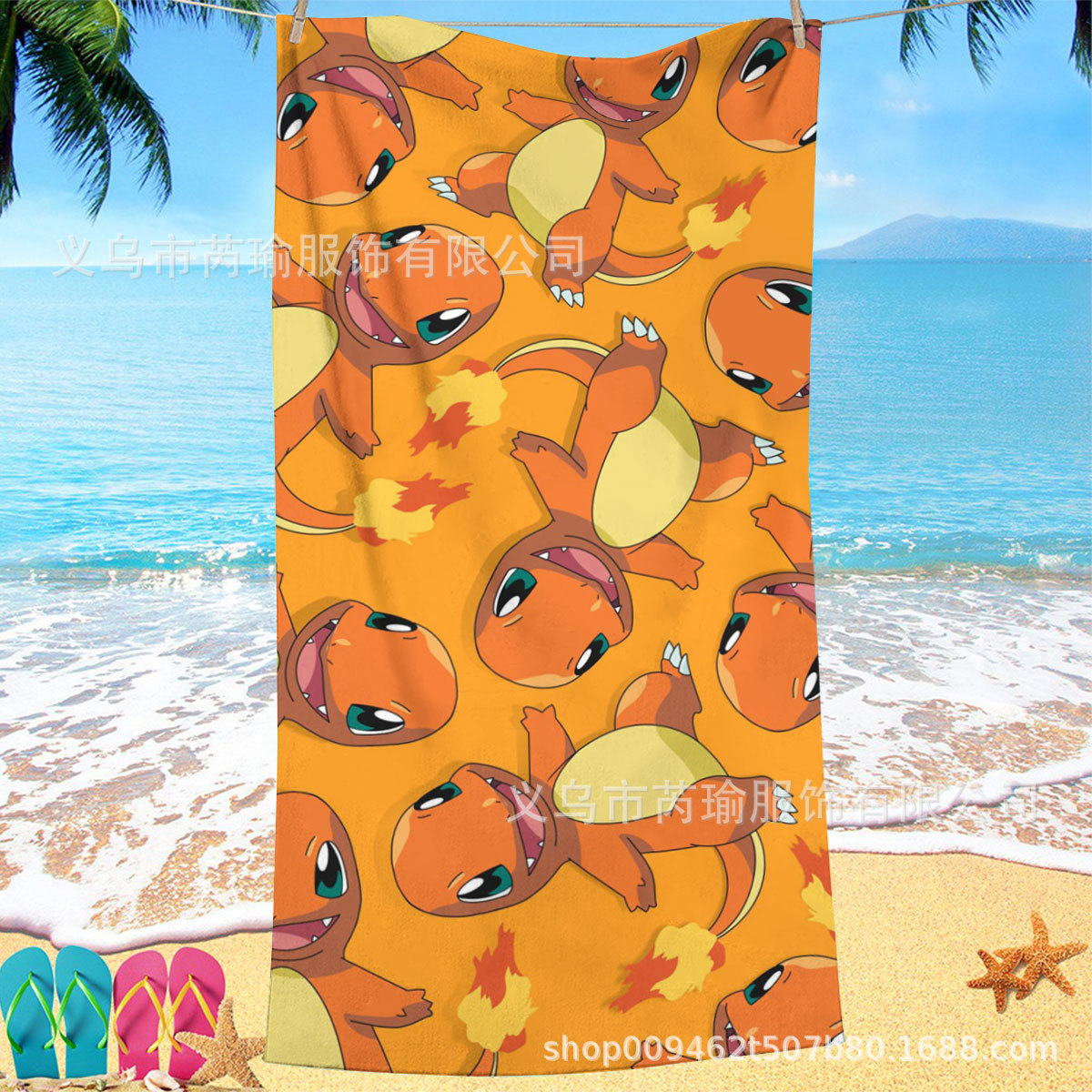 欧美跨境数码印花宝可梦皮卡丘口袋妖怪超细纤维沙滩浴巾沙滩巾